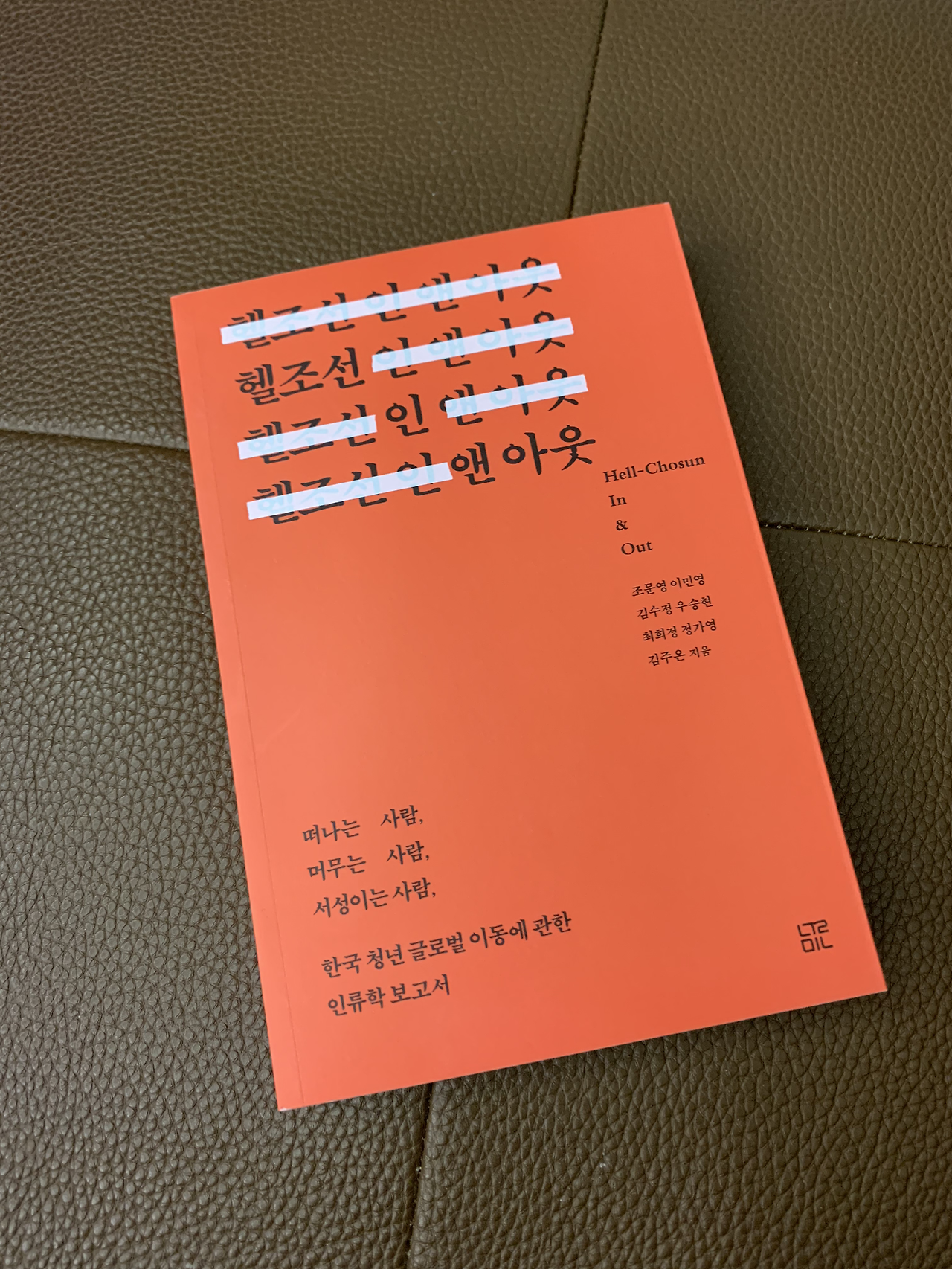 솔직히 제목에 낚여서 고른 책. 자극적인 제목에 걸맞은 빨간 표지는 덤이다. 여러 가지 이유로 한국을 떠나거나 한국으로 유입되는 청년들에 대한 이야기가 옴니버스식으로 구성되어 있다. 구성이 <민간중국>과 비슷한데 내용은 한참 모자란 느낌. 어느 면에서는 한국을 도피하는 청년들의 모습의 무기력함을 정당화시켜주는 것이 아닌가 싶은 생각도 들었다. 가장 인상 깊었던 부분은 미국의 미등록 한인에 대한 서술. 이 부분은 잘 몰랐던 부분이어서 기억에 많이 남는다.