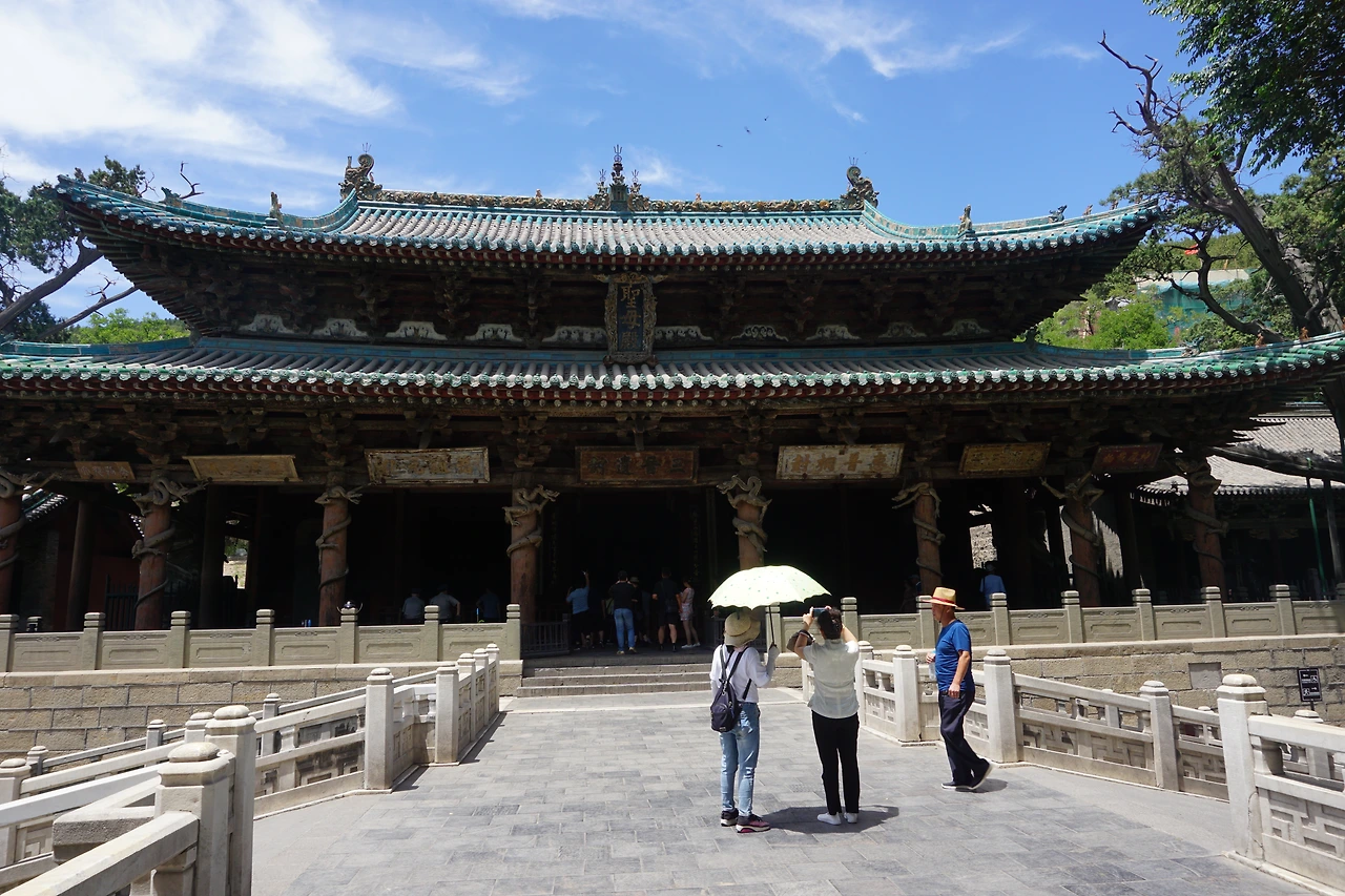앞서 진사에는 긴 역사의 흔적이 가득하다고 적었는데, 진사 안에 있는 성모전(圣母殿)이 그중 하나다. '성모'는 당연하게도 이곳에 모셔져 있는 당숙우의 모친, 읍강을 일컫는 말일 테다. 얼핏 보면 지붕의 색 등이 아직 바래지 않아 역사가 오래되지 않은 건물이라 생각할 수 있지만 지붕의 색이야 후대에 다시 칠한 것일 테고, 그보다 지붕 아래에 있는 현판들에 더 눈이 먼저 간다. 세월의 풍파를 정면으로 맞은 양 흐릿한 색깔과 그 위 글자들.