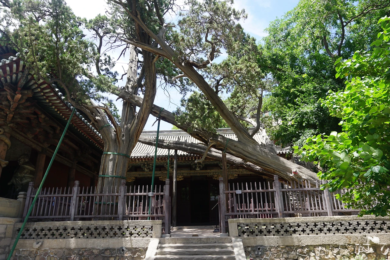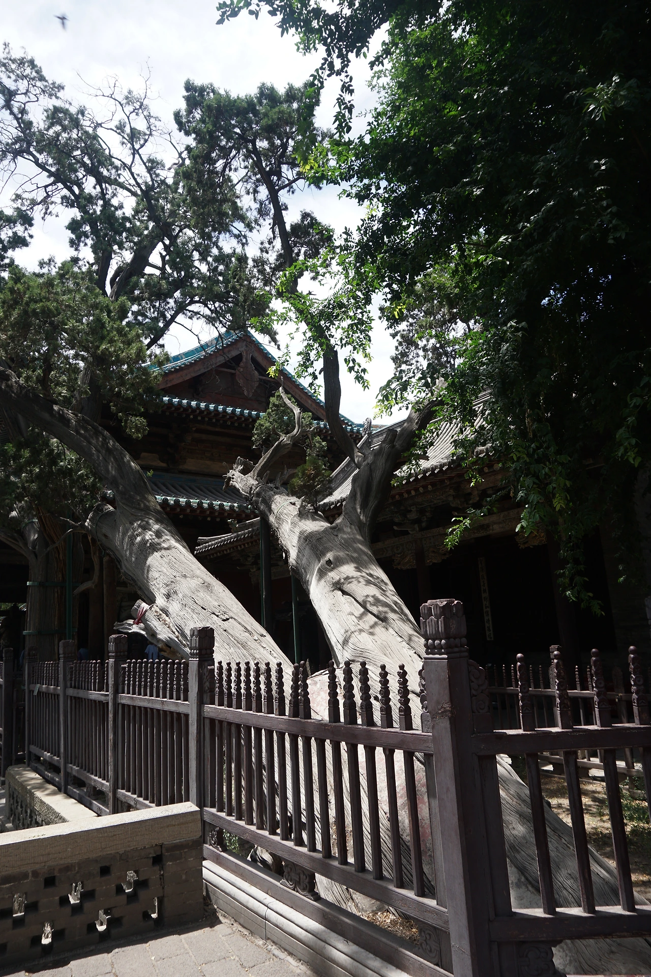 성모전 바로 옆에는 또 하나, 세월의 흔적이 느껴지는 것이 있는데, 바로 아래에 보이는 나무다. 주나라 때 심긴 측백나무(周柏)라고 불리는 이 나무는 무려 3000년이나 된 나무라고. 두 그루가 본래 있었는데 한 그루는 벼락이라도 맞았는지 쓰러져 나머지 한 그루에 기대 있다. 3000년이라니. 이 나무 앞에서 고작 백 년 남짓의 우리 인생이야, 하는 생각이 든다.