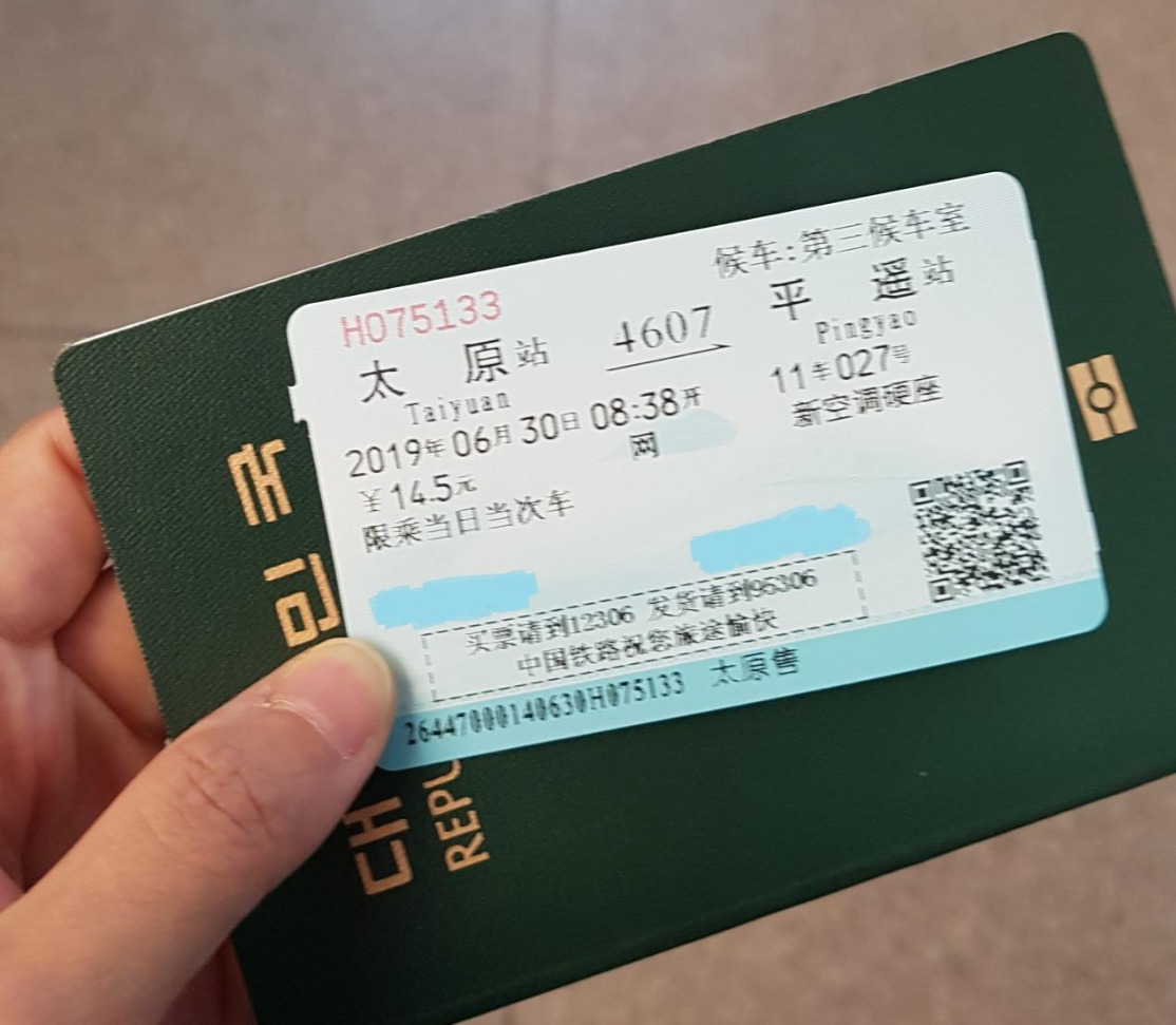 둘째날까지 내가 묵고 있던 타이위안에서 핑야오로 가는 방법으론 일반 기차를 타는 선택지가 있었다. 우리로 치면 새마을호, 무궁화호 같은 기차다. 하지만 타이위안 남역에서는 핑야오로 가는 기차가 없어 택시를 타고 먼저 타이위안 역으로 가야 했다. 추측컨대 타이위안 남역은 고속철 위주로 지나가고 일반 기차를 포함한 다른 종류의 기차는 주로 타이위안 역을 거쳐가는 것 같았다.