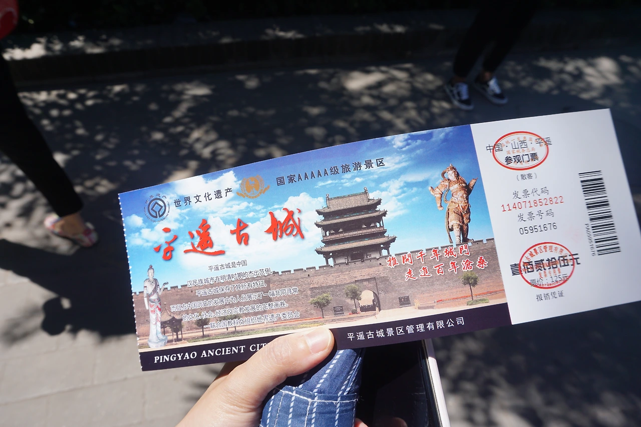숙소의 짐을 좀 정리하고 자물쇠를 잠근 뒤 방을 나섰다. 프런트에서 들은 대로 우선 고성의 표를 사러 매표소로 향했다. 아래에 보이는 성문 누각 앞쪽에 매표소가 위치해 있는데, 표값은 125 위안. 성수기라 확실히 비싸다. 이 고성 표를 가지면 고성 안에 있는 박물관·전시관 등을 둘러볼 수 있는데, 일부 전시관이나 고택은 별도의 입장권이 필요한 경우도 있다. 역시 유네스코 세계문화유산 등재된 슈퍼 관광지답다. 참고로 당시 이 입장권은 현금만 받았으니 참고.