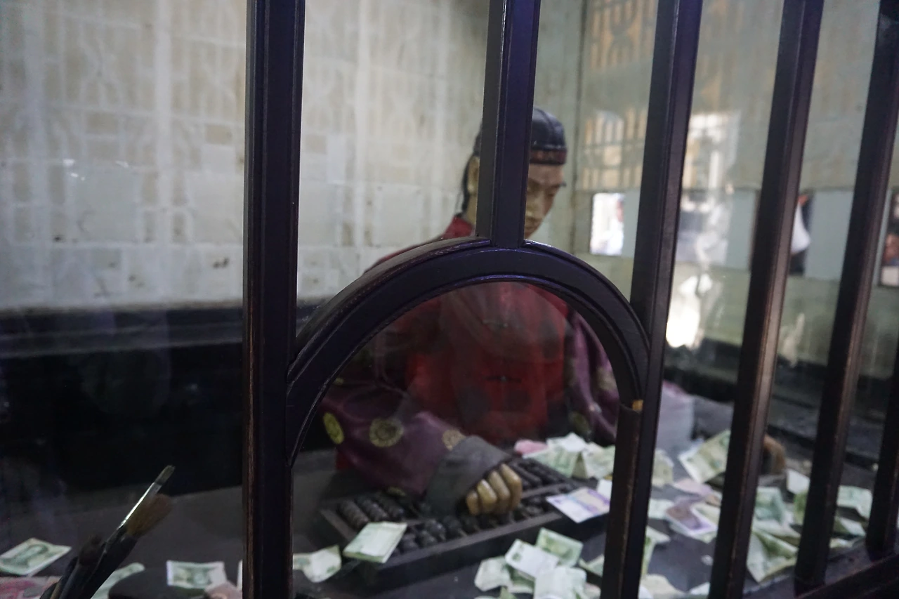 중국 최초의 표호라는 일승창(日升昌) 표호 역시 이곳 핑야오에 있는데, 1823년 설립된 곳이다. 중국에서는 관우나 재물과 관련된 명승고적에 가면 꼭 틈새로 어떻게든 돈을 넣어두는 사람들을 볼 수 있는데, 이곳도 예외는 아니었다. 주판을 튕기고 있는 밀랍 직원(?)의 곁엔 이곳을 다녀간 사람들이 던져둔 지폐들을 어렵지 않게 볼 수 있다.