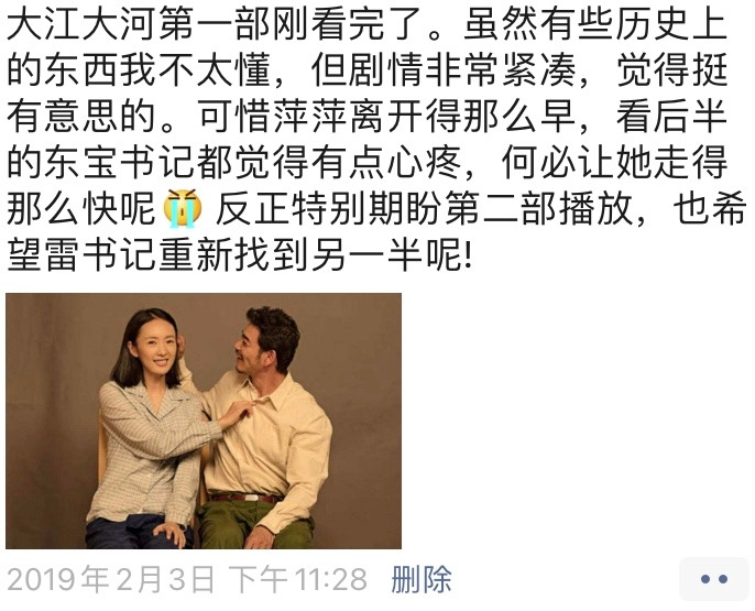 (2019.02.03 시즌 1을 보고) 따쟝따허 시즌 1을 방금 다 봤다. 비록 역사적인 부분을 잘 알지는 못하지만, 스토리가 탄탄해서 재미있었다. 핑핑(萍萍)이 너무 빨리 세상을 떠난 것이 너무 아쉽다. 그래서인지 후반부에 동바오(东宝) 서기를 보기만 해도 좀 마음이 아팠다. 왜 그렇게 빨리 죽여야 했던 걸까..? 어쨌든 시즌 2가 얼른 방영되었으면 좋겠다. 또 동바오(东宝) 서기가 다시 인생의 동반자를 찾았으면 하는 바람이다.