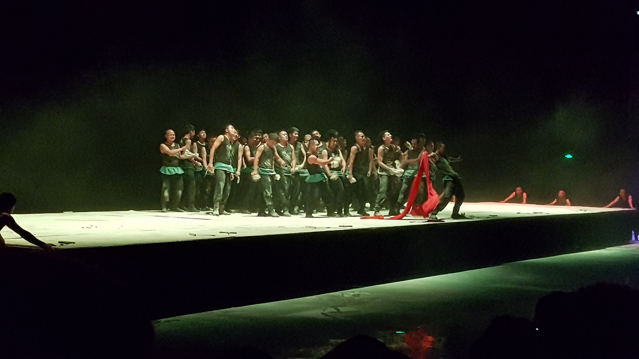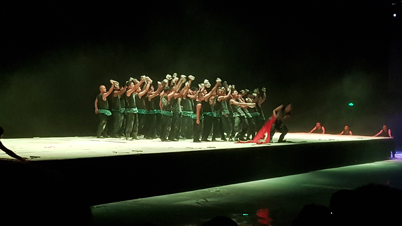 공연의 마지막 챕터는 관객들이 앉아서 관람을 하게 되는데, 무대에 온통 밀가루가 발라져 있었다. 배우들이 흰색 무언가를 들고 연기를 하고 있었는데, 자세히 보니 밀가루 반죽이었다. 산시성의 면식(面食) 문화를 보여주는 부분인 것 같았다.