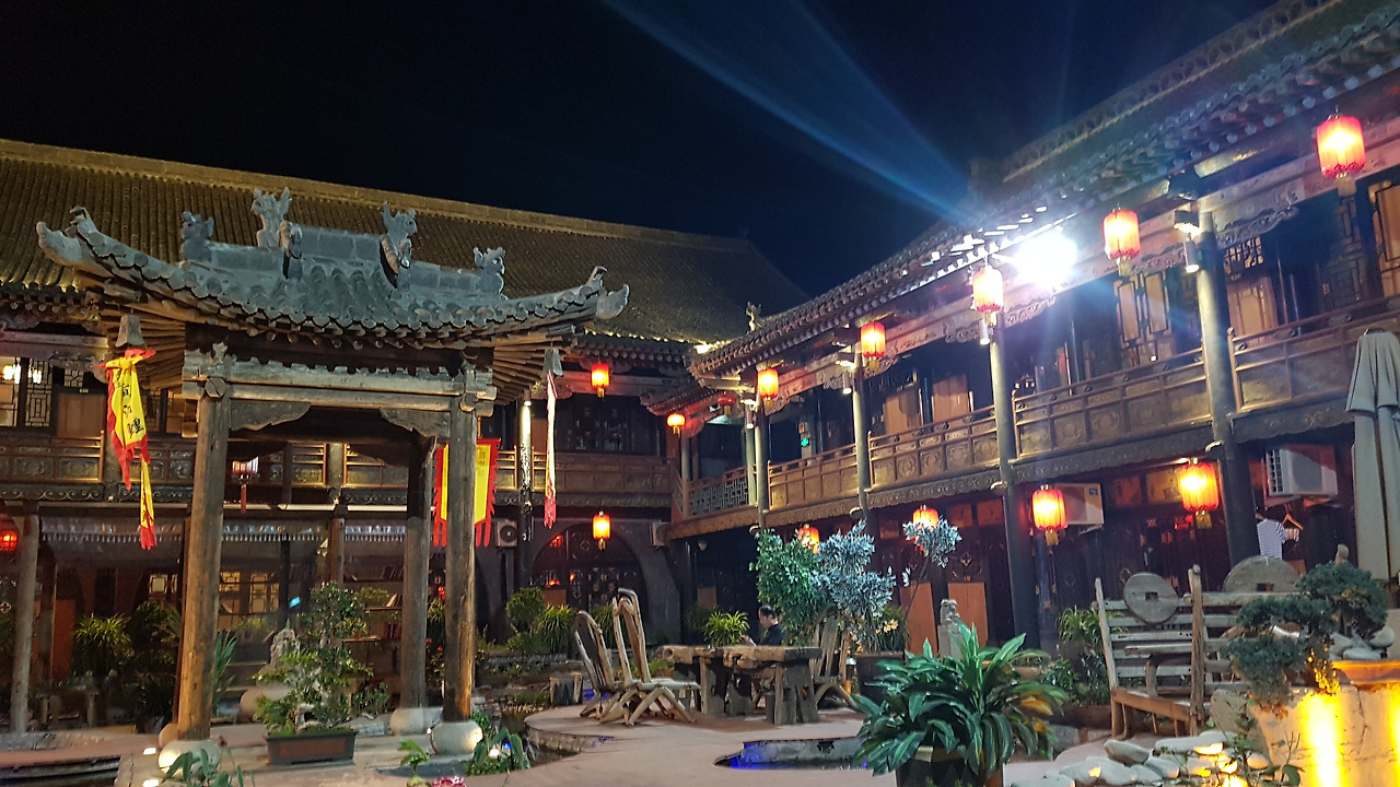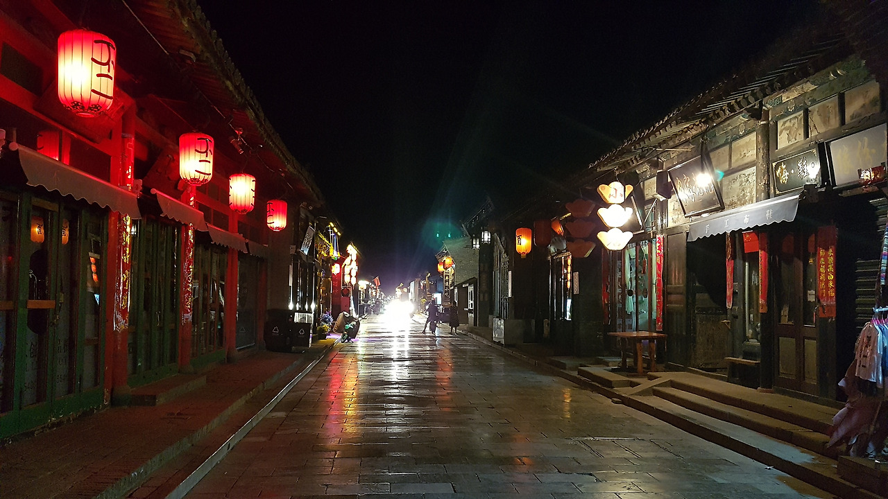 어렵사리 받아 든 병맥주를 들고 벌컥벌컥 삼키며 주인장의 노랫소리를 듣자니 낮 동안의 더위가 좀 가시는 것 같다. 적당히 쉬고 다시 고성 거리로 나온다. 밤이 내려앉은 고성 안은 낮 동안의 쨍함이 사라지고 약간은 적막한 공기가 감돈다. 그러고 보니 오늘 하루가 참 길었다. 기차를 타고 핑야오에 와서 알차게 고성도 구경하고, 공연까지 보고. 꿈꿔왔던 고성에서의 하루를 꽤나 알차게 잘 보낸 것 같다. 이제 고성 느낌 물씬 나는 숙소에서 핑야오에서의 처음이자 마지막 밤을 보내야지. 조용한 고성의 밤이다.