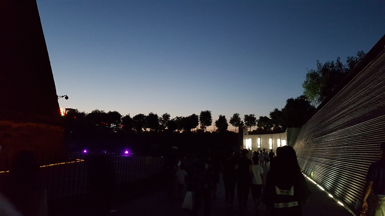 고성을 나가 성벽을 둘러싼 해자(垓子)를 지나면 꽤나 크게 지어진 공연장 입구를 볼 수 있다. 사실 핑야오에 있으면 고성 밖으로 나갈 일은 많지 않은데, 공연을 계기로 밖에서 고성을 바라볼 수 있어서 좋았다. 공연장에 도착하자 이미 많은 사람들이 7시 공연을 기대하며 공연장 밖에 모여 있었다. 입장할 때 사람이 몰릴까 봐 입장 가능한 출구를 지정해두긴 했지만 역시 중국. 사람이 많은 것은 어쩔 수가 없었다.