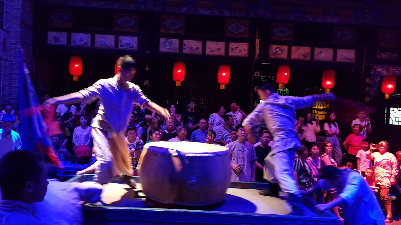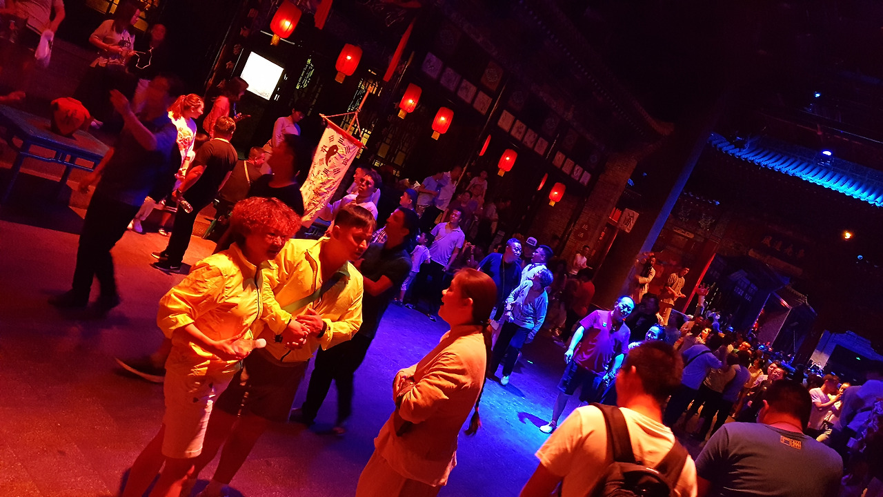 가족들의 배웅을 받으며 위험천만한 보디가드 임무를 수행하는 핑야오의 남자들을 보여줬던 이 공연은 그래도 낮동안 고성을 돌아다니며 역사 공부를 좀 하고 봐서 그 맥락을 이해하는 데 도움이 되었던 것 같다. 공연 중간중간 사진도 찍을 수 있고, 동영상 녹화도 가능했는데, 그만큼 공연 콘텐츠에 대한 자신이 있다는 뜻으로 보였다.
