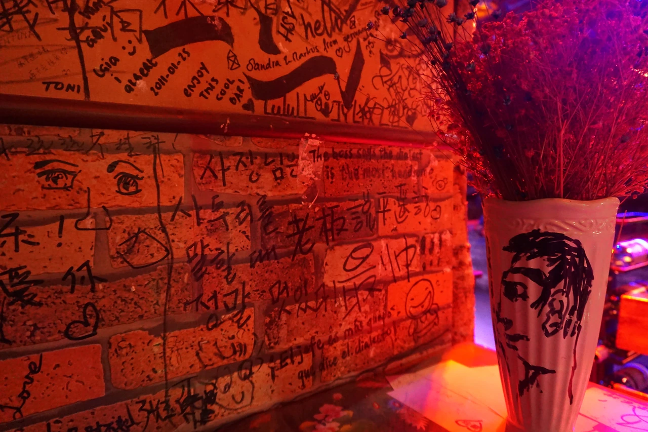 가게 벽면에는 손님들이 남긴 메모가 잔뜩이다. '너와 사귀고 싶어'라는 노골적인(?) 사랑 고백도 있고, 외국인 관광객이 자국의 언어로 남긴 의미를 알 수 없는 메모도 있다. 그 와중에 '사장님은 사투리를 말할 때 정말 멋있다!'라고 쓰인 한국어 낙서도 보게 되었는데, 그 옆에 똑같은 뜻을 가진 문장이 번체로 적혀있는 것을 보니 아마도 대만에서 온 여행객이 한국어로도 낙서를 남긴 것이 아닌가 싶다. 어쨌든 낯선 곳에서 한국어로 적힌 낙서를 만나니 반갑긴 무척 반갑다.