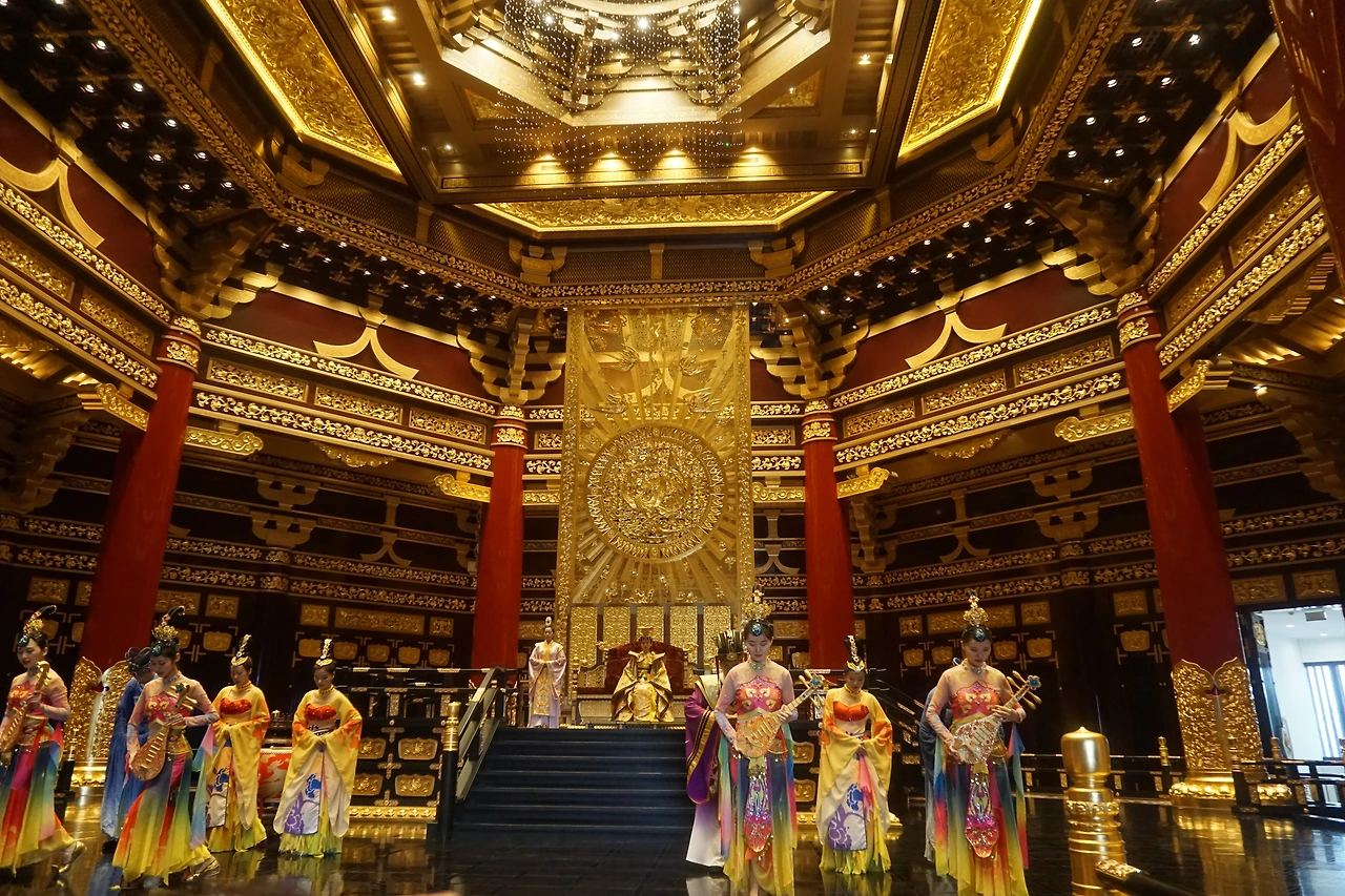 나는 먼저 밍탕으로 들어갔는데, 인테리어가 아주 눈이 부셨다. 복원하면서 무측천 시기의 화려함을 함께 복원한 듯했다. 또 아주 우연히도 그곳에 도착한 시간에 마침 공연이 있어 볼 수 있었는데, 이 번쩍번쩍하게 만들어진 곳을 무대로 활용하고 있었다. 무측천의 즉위와 일생에 대한 공연인 것으로 보였다. 밍탕에는 이런 공연 외에도 몇 개의 전시실이 있어 이곳의 역사를 보여주고 있었다.