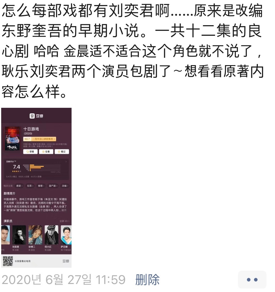 [譯] 어째 모든 드라마마다 리우이쥔(刘奕君)이 있는 것 같다..? 히가시노 게이고의 초기 소설을 각색한 드라마. 총 12회밖에 안 되는 양심적인 드라마. ㅎㅎ 진쳔(金晨)이라는 배우가 이 역할에 맞는지 여부는 차치하고, 겅러(耿乐)와 리우이쥔(刘奕君) 이 두 배우가 드라마를 멱살 잡고 끌고 간 듯.. 원작 내용을 좀 보고 싶다.