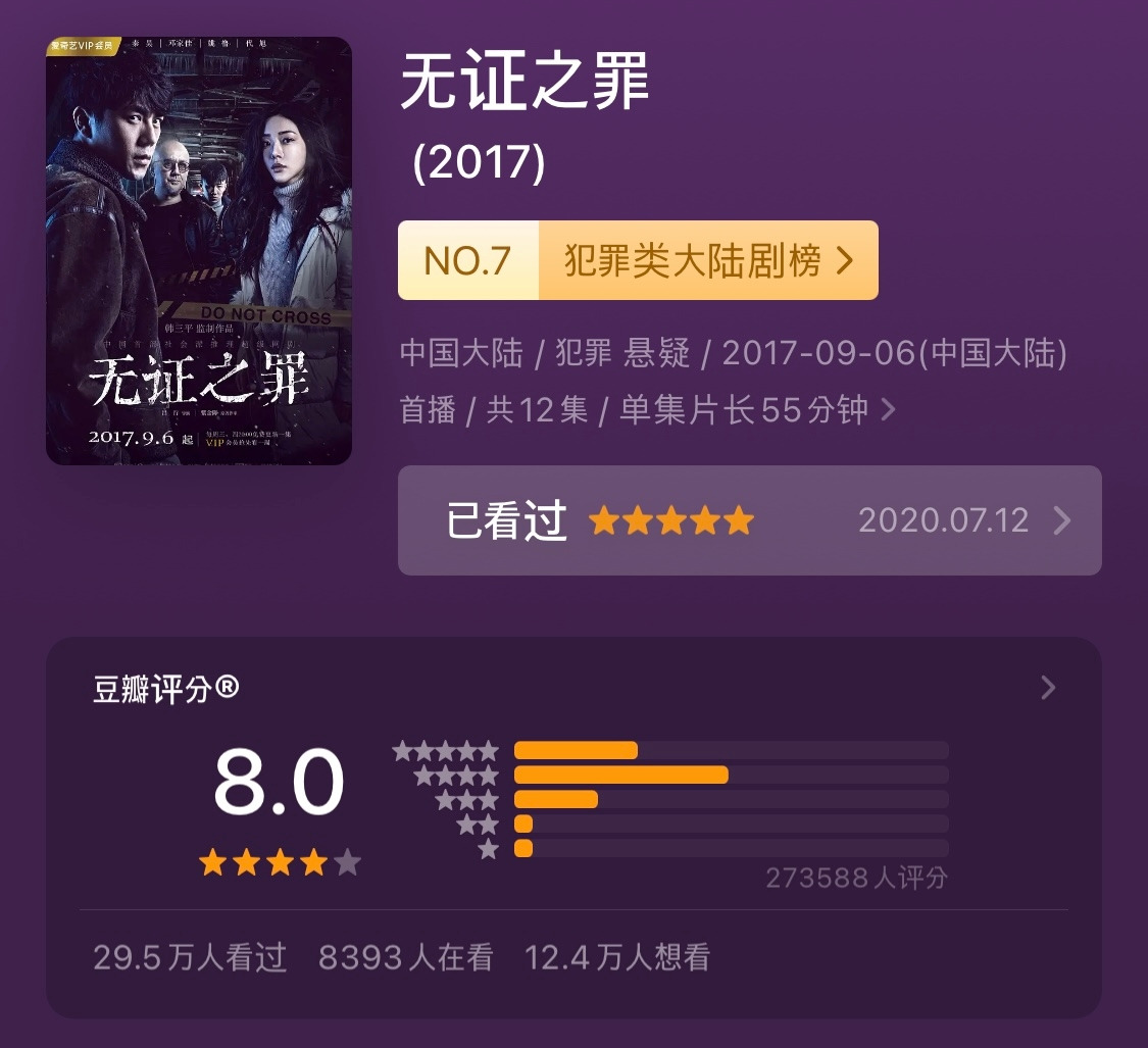 · 제목의 뜻은 '증거가 없는 죄'인데, 실제로 드라마 속의 메인 사건인 '눈사람 연쇄살인사건(雪人连环杀人案)'은 눈사람이 시간이 지나면 녹아버리는 것처럼 사건 현장에 그 어떤 증거도 발견되지 않는 사건임. 게다가 범인은 사건 현장에 "나 잡아봐라~"하는 도발 문구까지 남김. 주인공인 경찰 옌량(严良)이 이 사건을 어떻게 해결하는지, 인물 간의 복잡한 관계와 함께 보여주고 있음. 스릴러, 추리물을 좋아한다면 충분히 재밌다고 생각할 스토리임.
