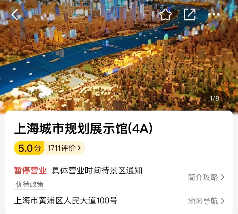 2000년 상해에 개관한 상해도시계획전시관(上海城市规划展示馆)은 엄밀히 말하면 상해라는 도시가 정부 각 부문의 뚜렷한 청사진과 계획 하에 만들어진 도시라는 점을 홍보하는 곳이다. 상해시정부는 이곳을 좀 더 유명한 곳으로 만들기 위해 노력을 아끼지 않았고, 그 결과 지금은 4A급 관광지(5A가 만점)로 선정되어 있다.