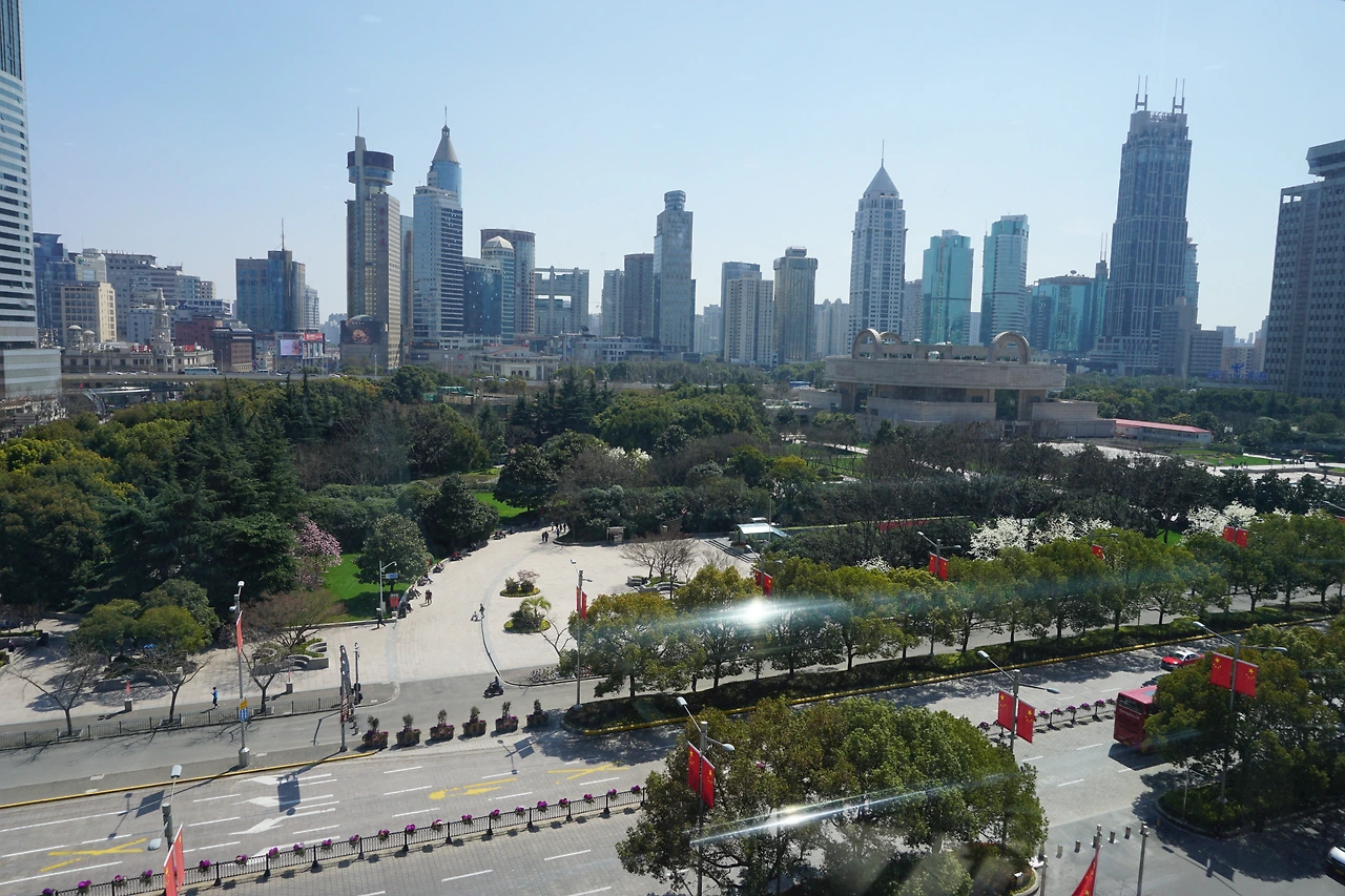 이 전시관의 맨 위층에 올라가면 간단히 음료를 마실 수 있는 카페테리아가 있고, 통유리로 된 전망대 같은 곳이 있다. 마침 날씨가 좋아 통유리를 통해 본 풍경을 찍었다. 상해를 마음으로 느끼고, 머리로 배워 본 3일 차. 조금은 상해와 친해진 기분이다.