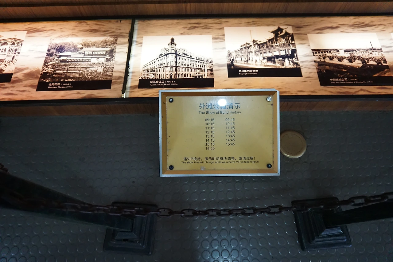 전시관 내에는 이러한 와이탄의 역사를 영상으로 보여주는 구역이 있다. 1시간마다 한 번씩 진행하는데, 조금 옛날 자료라 촌스럽긴 하지만 그래도 역사를 이해하기 좋은 자료라 기회가 되면 보는 것도 좋겠다.