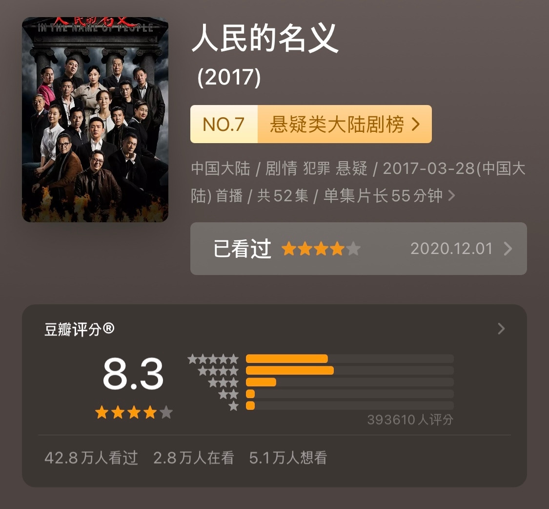 . 좀 고급진 중국어 표현을 배우고 싶거나, 중국에서 연기로 내로라하는 베테랑 배우들이 어떻게 연기하는지 보고 싶다면 볼만한 드라마. 다캉(达康) 서기에 주목하시길.