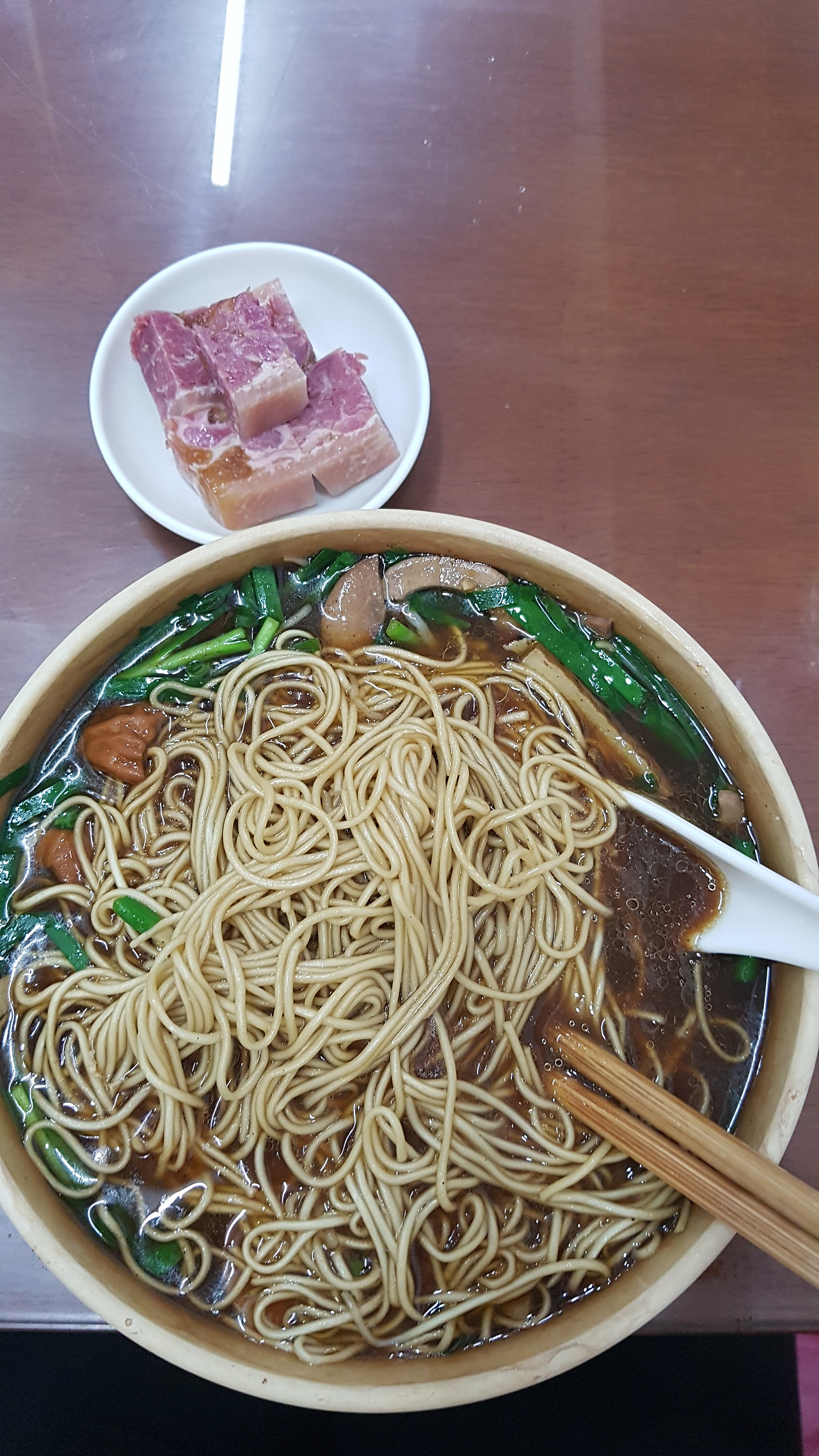 나는 곱창(肥肠)과 돼지 껍데기(腰片)가 들어간 면, 그리고 야오러우 작은 것 한 접시를 시켰다. 사실 국물의 맛은 아주 전형적인 강남의 면 요리 맛, 즉 달고 짭짤한 간장맛이었다. 이 면이 유명한 이유는 추측컨대 뚜껑을 덮은 쪽과 덮지 않은 쪽의 온도차 때문에 면이 훨씬 쫄깃쫄깃해진다는 것 때문이 아닌가 싶은데, 정확한 차이점은 잘 모르겠다. 하지만 비도 많이 오고 으슬으슬 춥던 차에 따뜻한 면을 먹으니 몸이 좀 풀리는 것 같은 기분이 들었다.