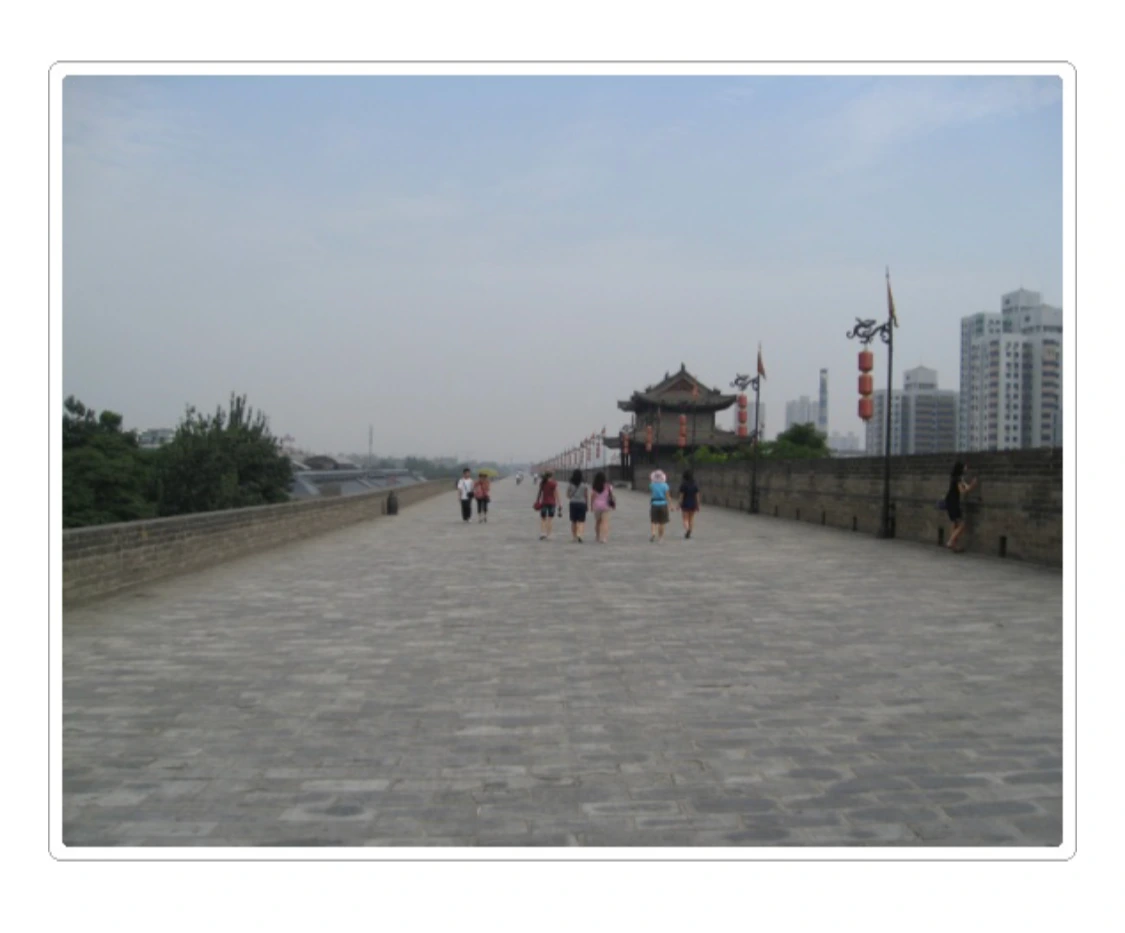 시안 성벽(西安城墙)이라고 하면 명나라 때의 성벽과 당나라 때의 성벽을 포괄하는 개념인데, 일반적으로 명나라 때의 성벽을 가리킨다. 명 태조 때 만들어진 성벽으로 현존하는 성벽들 중 가장 잘 보존되어 있고 규모가 가장 큰 성벽이다. 성벽 위에는 옛날에 사용했던 무기도 보존해 두었다.