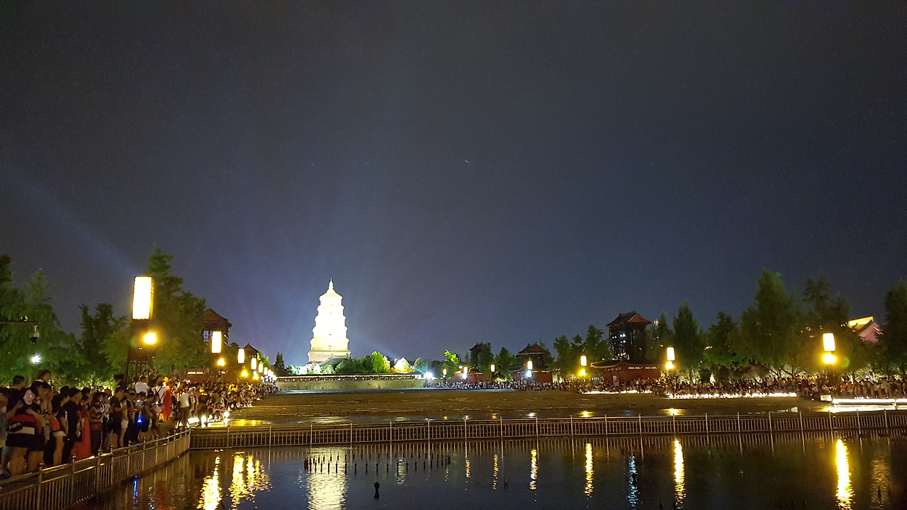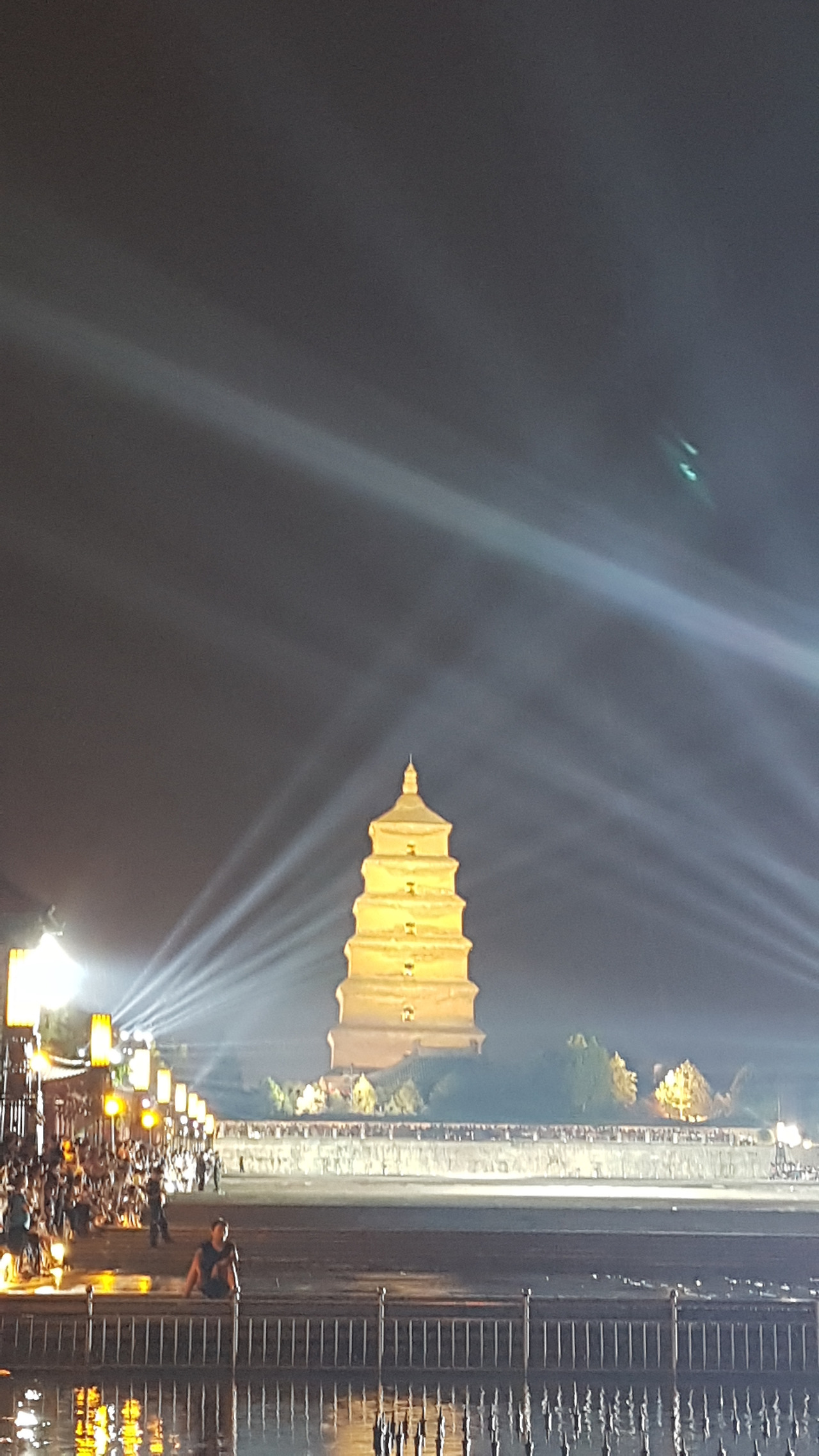 2010년 답사로 왔을 때 대안탑을 와보긴 했었는데, 그땐 낮에 왔기 때문에 대안탑 안에 들어가 맨 위층에서 아래를 내려다봤다. 오기 전날 화산(华山)을 등반했기에 다리가 너무너무 아팠지만 죽기 살기로 계단을 올라갔던 기억이 있다. 7층 대안탑 꼭대기에서는 네모 반듯한 시안의 모습도 볼 수 있고, 크게 조성된 분수광장 (그렇다, 이때도 분수가 있었다!)도 볼 수 있었다.