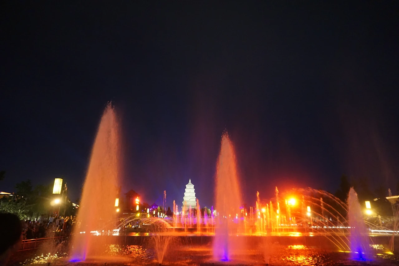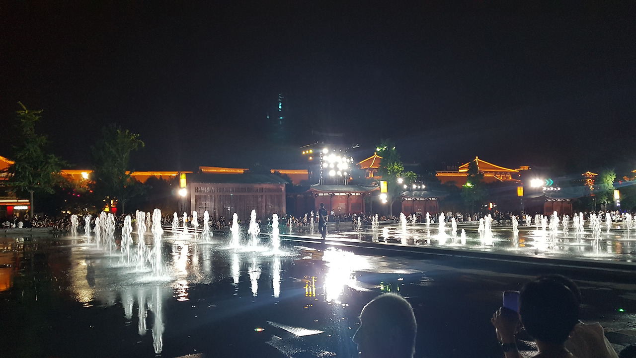 하지만 중국에서 보는 무언가가 늘 그렇듯 대안탑 음악분수는 엄청난 규모와 자유분방한 물기둥으로 우리를 반겨주었다. 총천연색 LED로 또 한 번 절망을 맛보긴 했지만 넓은 분수광장에서 음악분수를 연출하려면 어쩔 수 없는 것 아니겠냐는 너그러움이 살짝 생겼다. 물기둥도 마찬가지. 아무래도 예술의 전당처럼 한 방향에서만 보는 분수쇼가 아니고 광장의 형태이기 때문에, 어느 각도에서 봐도 비슷한 모양이어야 하고, 그렇기에 자유분방한 모양으로 나올 수밖에 없겠다는 생각을 했다.
