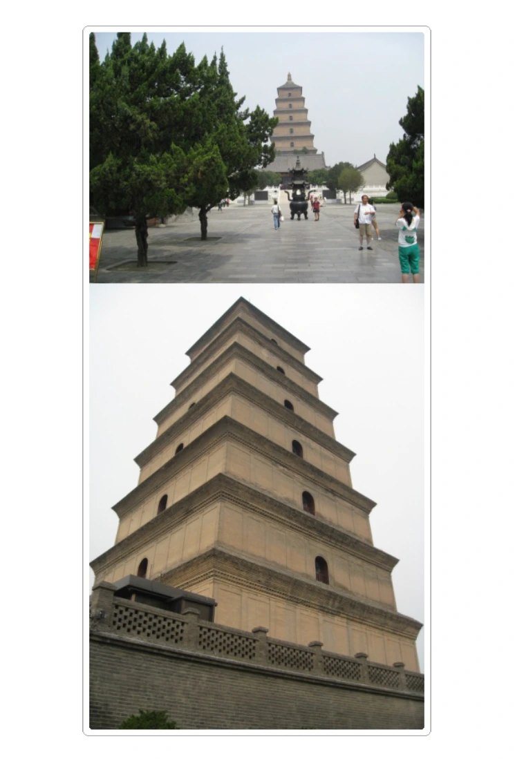 음악분수 이야기에 앞서 대안탑에 대해서 소개해야겠다. 대안탑은 대자은사(大慈恩寺) 안에 있어 자은사탑(慈恩寺塔)이라고도 불리는 7층짜리 탑인데, 시안의 상징적인 탑이다. 당나라 때 현장법사가 인도에서 가져온 경전불상을 보관하기 위해 만들었다고 전해진다. 본래 5층짜리 탑이었으나 측천무후 때 10층으로, 이후 전란 등으로 인해 현재의 높이인 7층으로 굳어졌다.