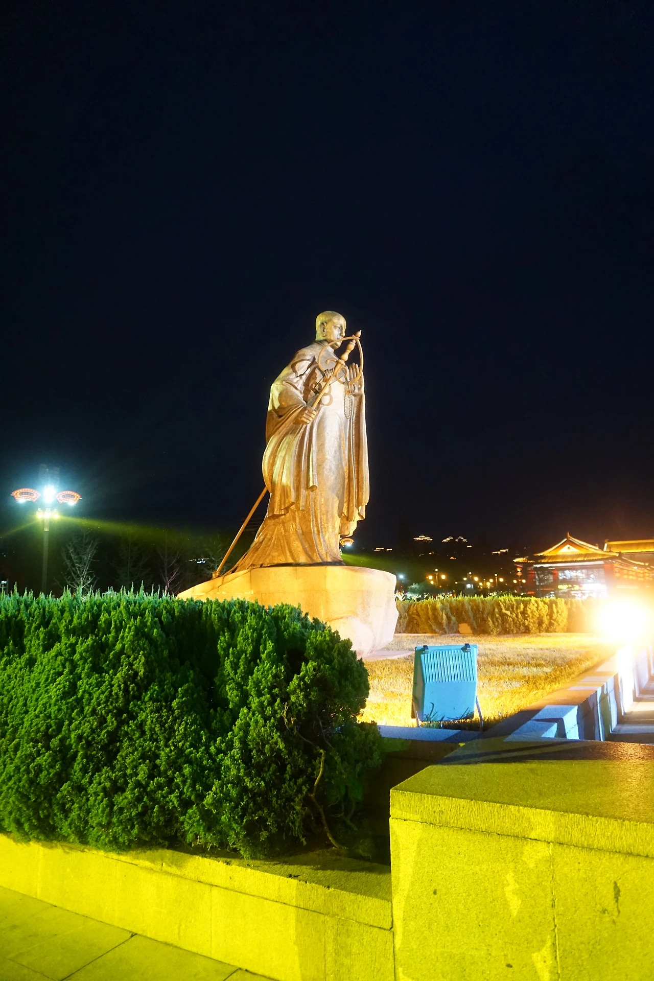 이번에는 저녁에 왔기에 지난번 봤던 것과는 사뭇 다른 풍경이었다. 일단 저렇게 조명으로 탑신을 밝게 보이게 만들어두었고, 현장법사와 관련된 곳인 만큼 탑 앞에 현장법사 동상도 볼 수 있었다.