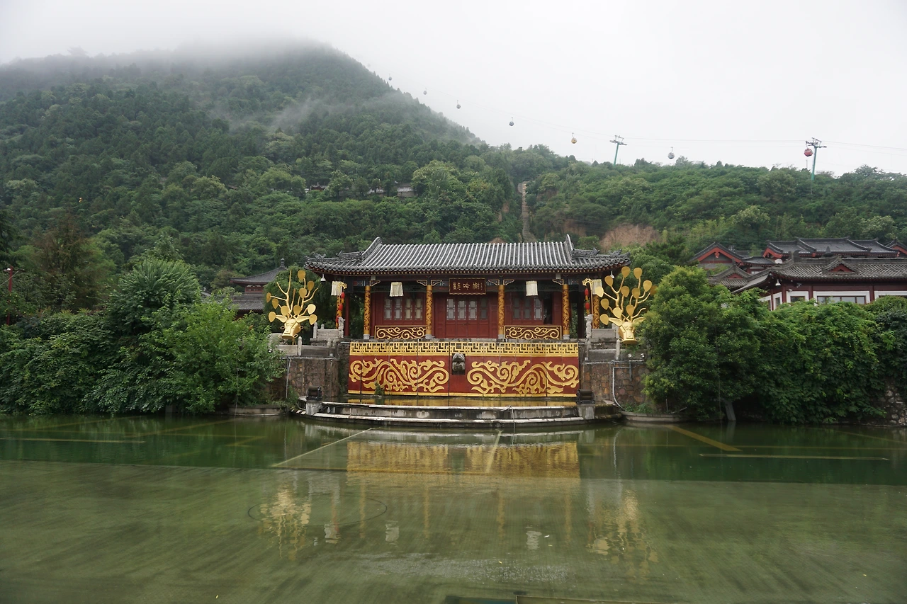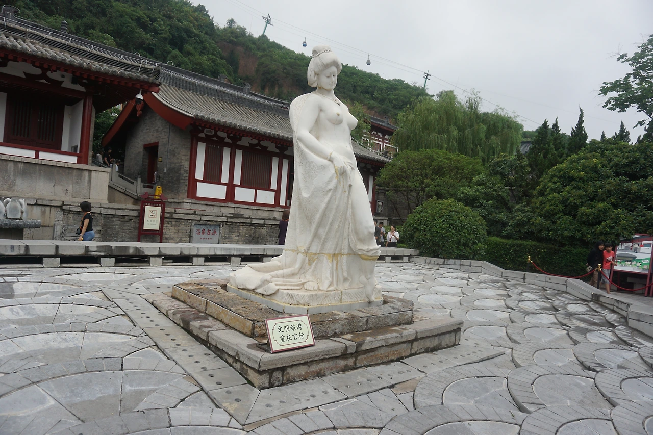 이날 날이 너무 안 좋아서 사실 화청지의 풍경을 봐도 큰 감흥이 없었다. 어디를 보나 안개가 드리워져있었고 부슬부슬 비마저 내렸다. 그래도 들어왔으니 양귀비가 목욕했다는 탕은 구경해야지. 들어가 보면 아래 사진처럼 양귀비 조각상이 있고 양귀비가 목욕을 했다는(?) 장소도 마련되어 있다. 믿거나 말거나.