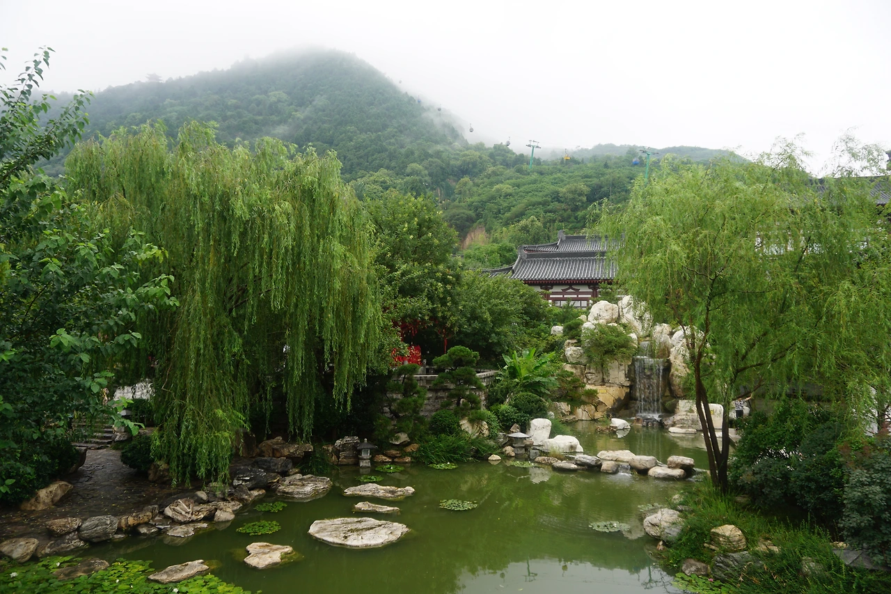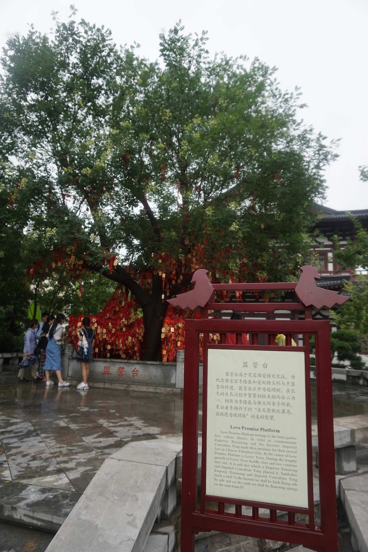 돌아다니다 보니 '맹세대(盟誓台)'라는 곳이 있고 그 앞에 마치 남산 앞 자물쇠처럼 나무패가 붉은 실에 매달려 잔뜩 걸려 있다. 설명을 읽어보니 '당 현종과 양귀비의 사랑의 맹세를 기념하는' 곳이란다. 아마 저 나무패들은 정말 남산 자물쇠마냥 연인들이 사랑의 맹세를 담아 걸어둔 징표이리라. 역사적인 의미는 없다. 오해 마시길...