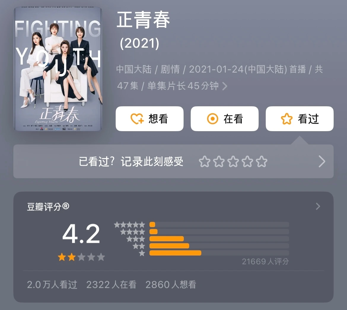 아마 첨에는 중화TV인가 웨이브인가에서 보고 마침 좋아하는 배우 은도(殷桃)도 나오고 해서 한번 봐야겠다 싶어 본 현대극인 것 같은데, 최악이었다. 역시 또우빤 평점을 무시하면 안돼 ㅠㅠ!!