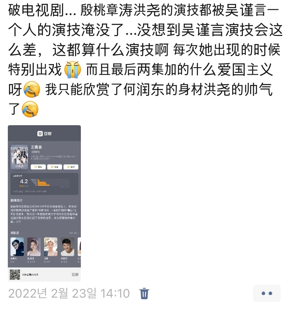 후기 첫 단어가 破电视剧라니 ㅋㅋ