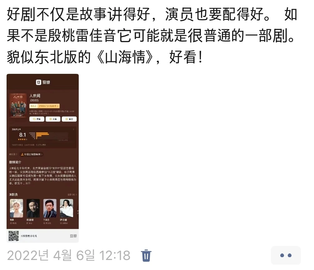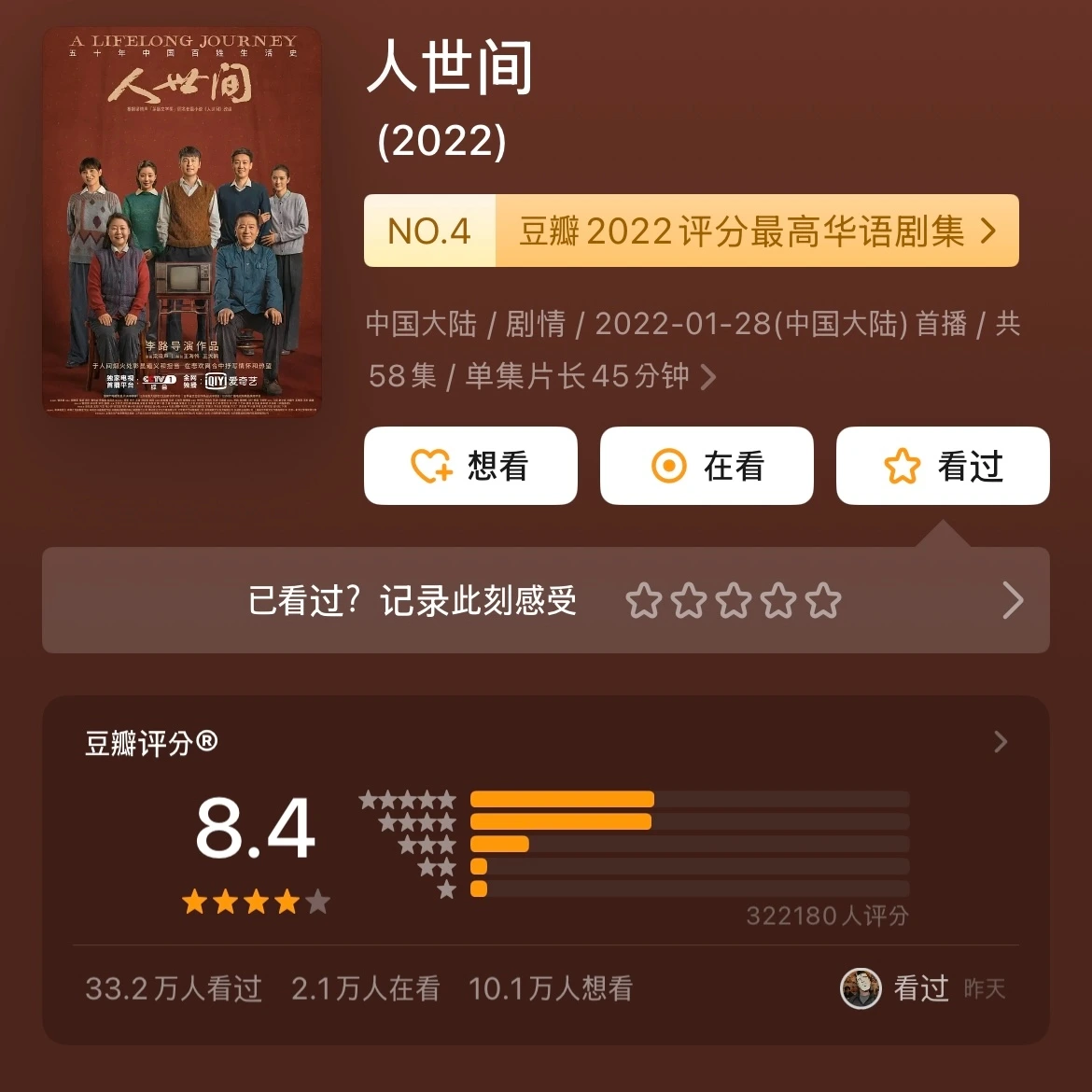 22년에 리뷰 쓸 때 또우반 평점 8.1이었는데 오늘 기준 8.4네.. 오히려 더 올랐다는 게 좋은 드라마라는 방증. 드라마 편수 제한 정책 시행 전이라 ㅋㅋ 58부작이라는 다소 긴 길이는 단점.