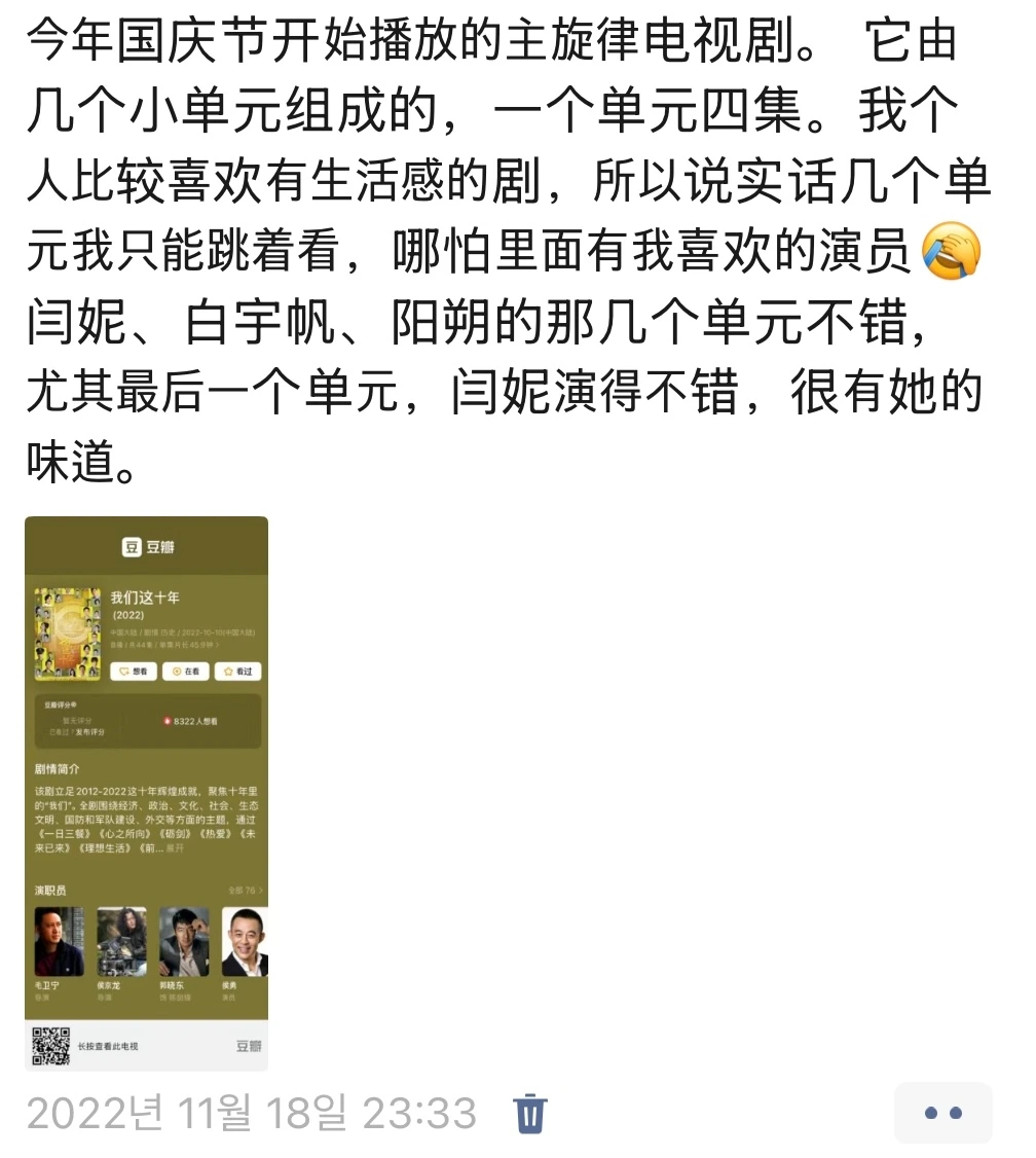 2022년 국경절을 맞아 만든 드라마. 제목에서 느껴지듯 2012년부터 2022년 10년 사이 중국이 얼마나 살기 좋아졌고.... 등등을 말하는 주선율 드라마다. 주선율 드라마는 평점이 없다! ㅋㅋㅋ 또우빤도 중국 플랫폼이라 어쩔 수가 없다..