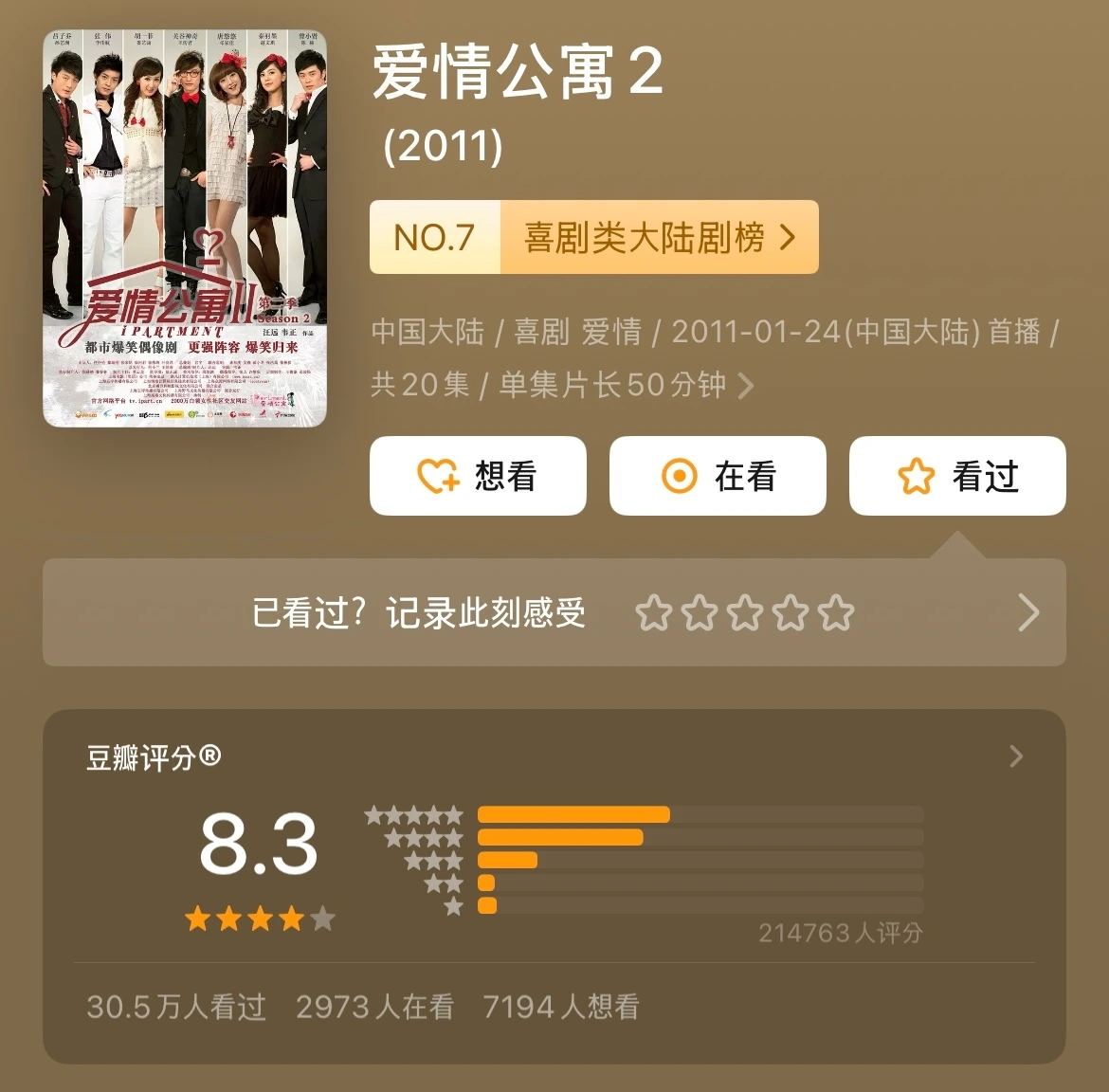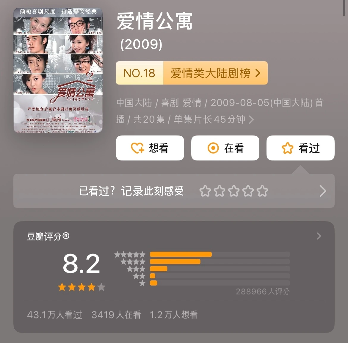 중국인에게 추억의 시트콤! 하면 생각나는 작품 중 하나일 애정공우. 우리나라로 치면 남자셋여자셋 혹은 논스톱 정도이려나? 이 드라마도 청춘들이 사는 아파트에서 벌어지는 일이니... 여튼 시즌이 5개나 제작된 엄청난 수명의 시트콤이라 하겠다.
