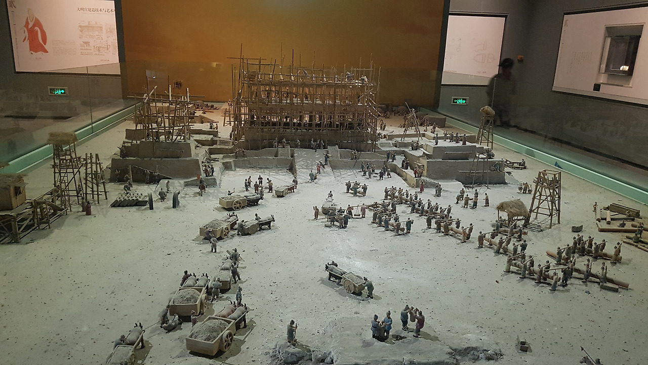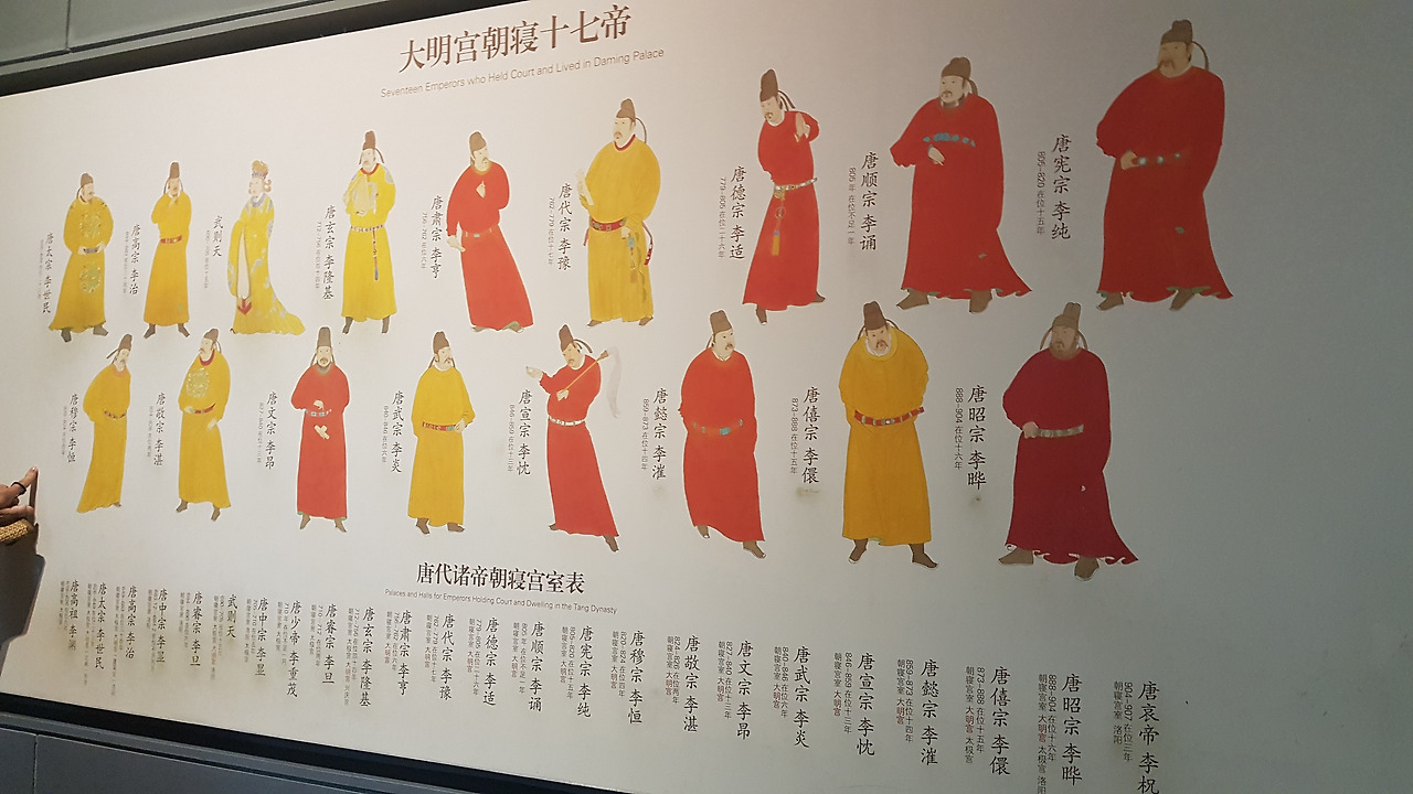 사진에서 보이는 17명의 황제가 이곳 대명궁에서 정무를 봤다고 하며, 낮에는 정무를, 밤에는 가무를 즐겼다고 한다. 인형으로 만들어진 모형들을 보니 당시 보던 <장안십이시진> 드라마가 떠올랐다.