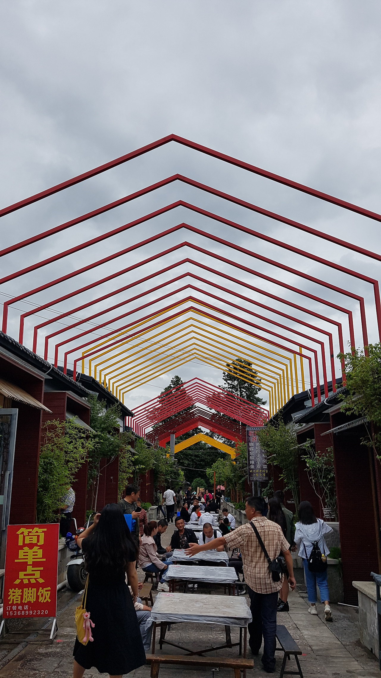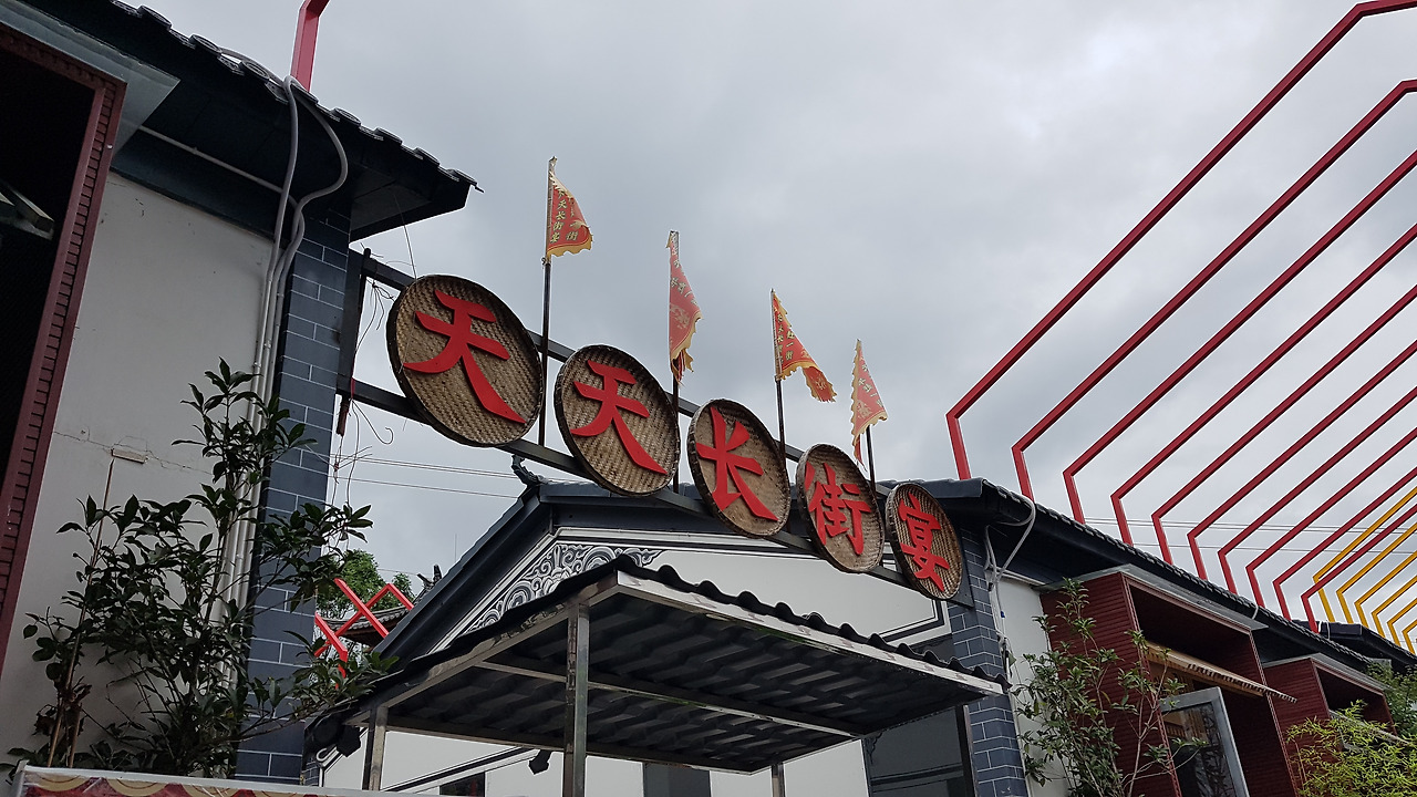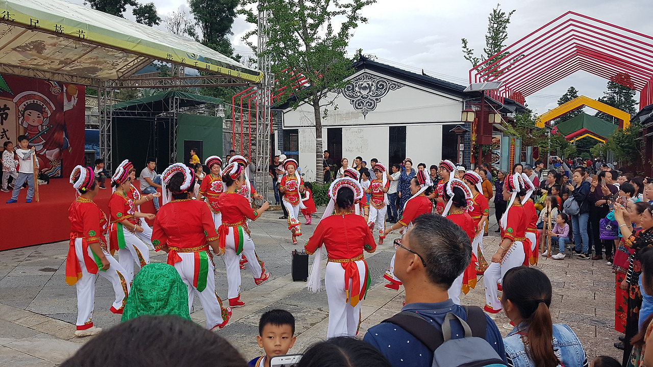 빠오처를 타고 도착한 곳은 행사에 포함되어 있는 장가연(长街宴) 연회장. 인당 58 위안, 한화로 만 원 정도에 표를 사면 간단한 음식과 술이 나오는 연회인 장가연과 훠바지에 참여가 가능하다. 장가연은 말 그대로 긴 길에서 진행되는 연회로, 긴 길에 식탁을 세팅해 두고 음식을 차려 많은 사람들이 함께 즐기는 축제를 말한다. 소수민족 중에는 하니족(哈尼族)이 이 행사로 유명한데, 이날 참여한 건 바이족의 장가연이었다.