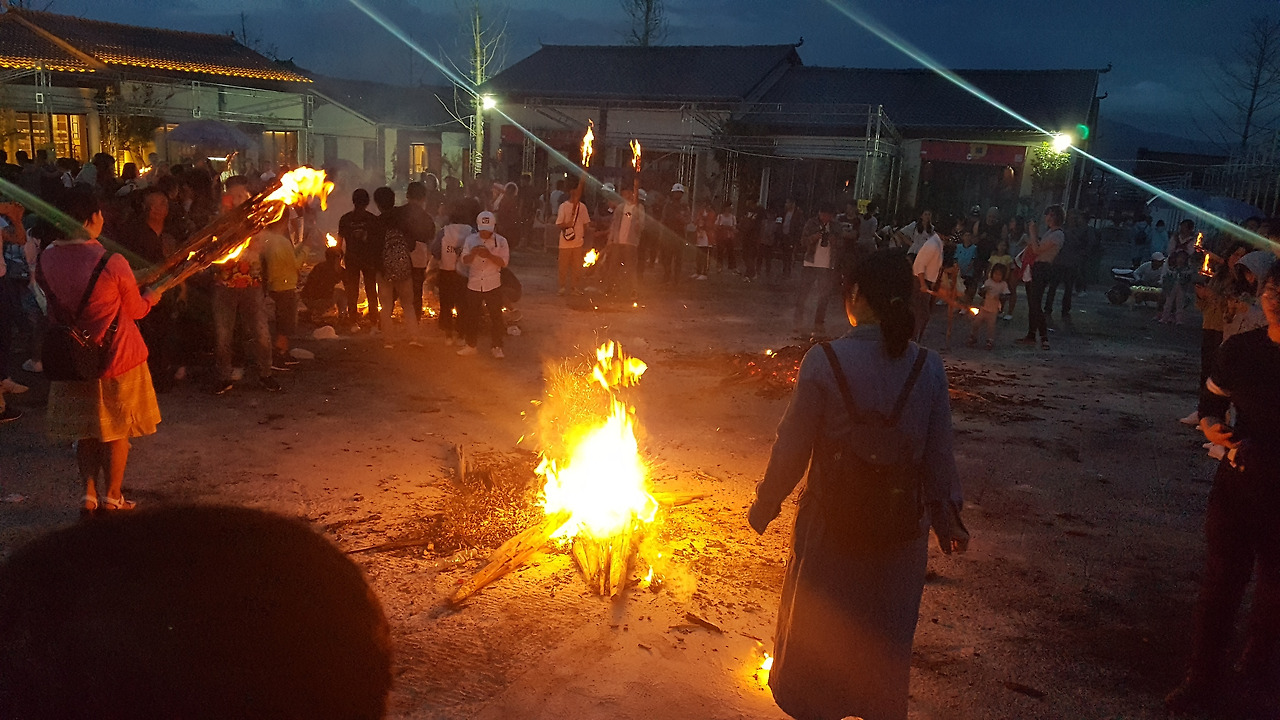 하지만 개인적인 생각으로는 이건 유교적 사상을 이입하려는 정치적인 의도가 담긴 설인 것 같고, 오히려 이 운남 북부 지역 민족들이 원래 살던 곳이 비교적 춥고 건조한 고원지대였기에 불을 숭상하여 이런 축제가 생겼다고 보는 게 더 맞을 것 같다. 덥고 습한 시솽반나에서 만났던 다이족에게는 이와 반대로 태국의 쏭크란처럼 물을 뿌리는 포수이지에(泼水节)라는 축제가 있는 점도 그 방증이 될 수 있을 것 같다.