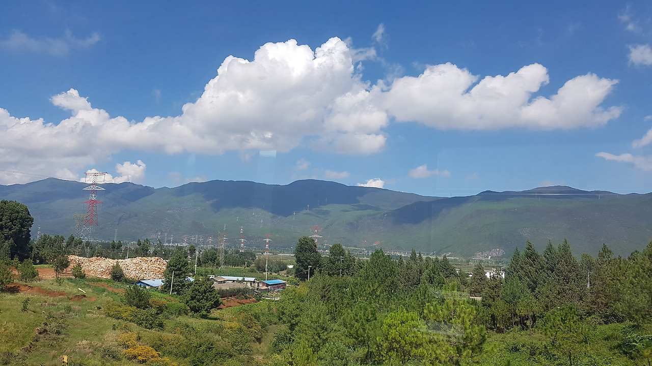 날씨 좋은 날, 볕이 제일 좋은 오후 2시경부터 기차에 앉아 이동을 하니 창 밖으로 보이는 풍경이 참 좋다. 산 위를 덮은 구름이 드리운 그림자가 이렇게 신기한 풍경을 만들어내다니! 리쟝으로 가는 내내 감탄하며 갔던 기억이 난다.