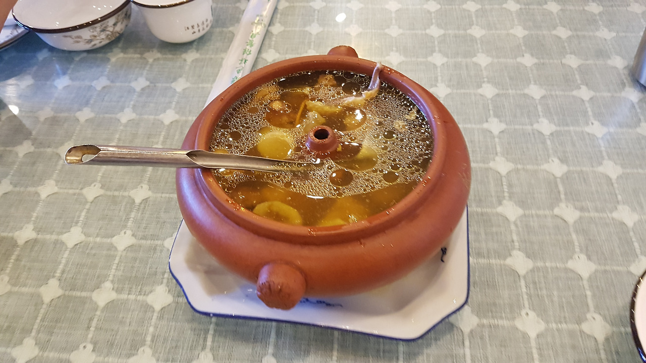 일단 안전하게 랭킹에도 높은 순위이고 다른 테이블도 많이들 시킨 야생버섯찜닭(野生菌汽锅鸡)과 누룽지야크고기볶음(锅巴牦牛肉)을 시켜봤다. 운남은 버섯의 도시라 불릴 만큼 다양한 버섯들이 많이 자라기 때문에, 이렇게 버섯을 사용한 요리가 많다. 그중에서도 汽锅鸡는 닭과 야생버섯을 항아리 같은 솥에 넣고 증기를 이용해서 쪄낸 탕요리다. 야크(牦牛)는 리쟝에서 특히 많이 보였는데, 고기도 먹고 그 우유로 치즈나 누가 사탕 등도 만들어서 먹는다. 사천, 티벳, 운남 등 고산지대에서 관련 제품을 많이 먹는 것 같다. 내가 먹은 야크 고기는 좀 질기고 특유의 냄새가 났는데, 원래 그런 건지 아니면 이 식당 음식이 그랬는지는 모르겠다.