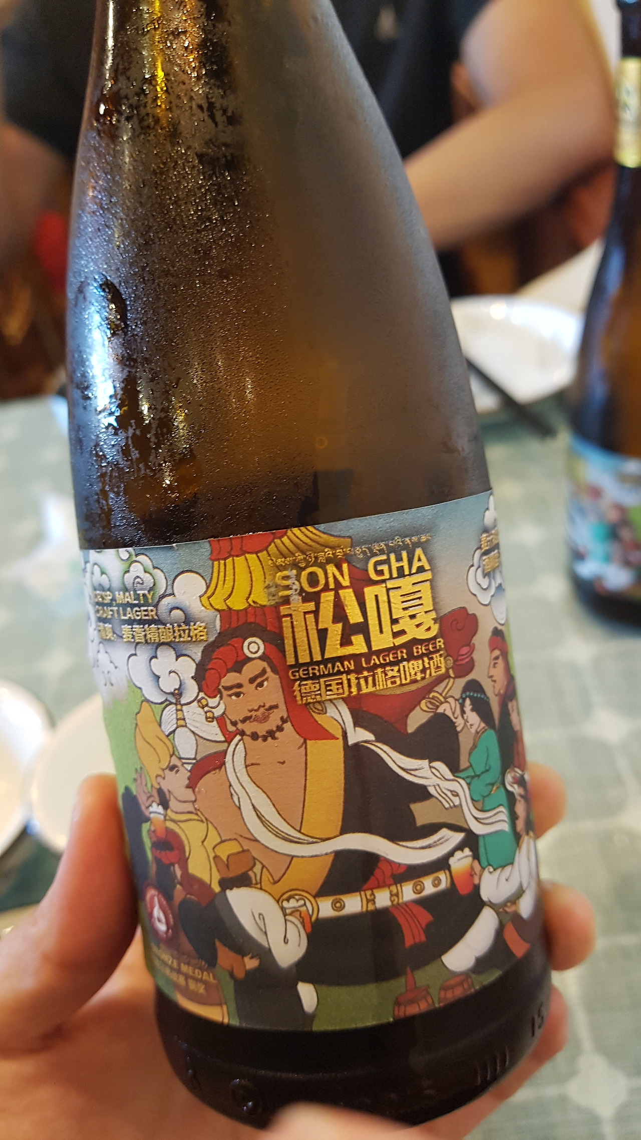맛있는 음식에 빠질 수 없는 맥주도 한 병 시켰다. 여기서 팔던 맥주 중 가장 비쌌던 샹그리라 송가 맥주(香格里拉松嘎啤酒). 독일 라거 맛이라는데, 운남에서 먹는 맥주들은 대부분 라거인 것 같다. 시원한 맛에 홀짝홀짝. 이제 배를 채웠으니 고성 구경을 가볼까!