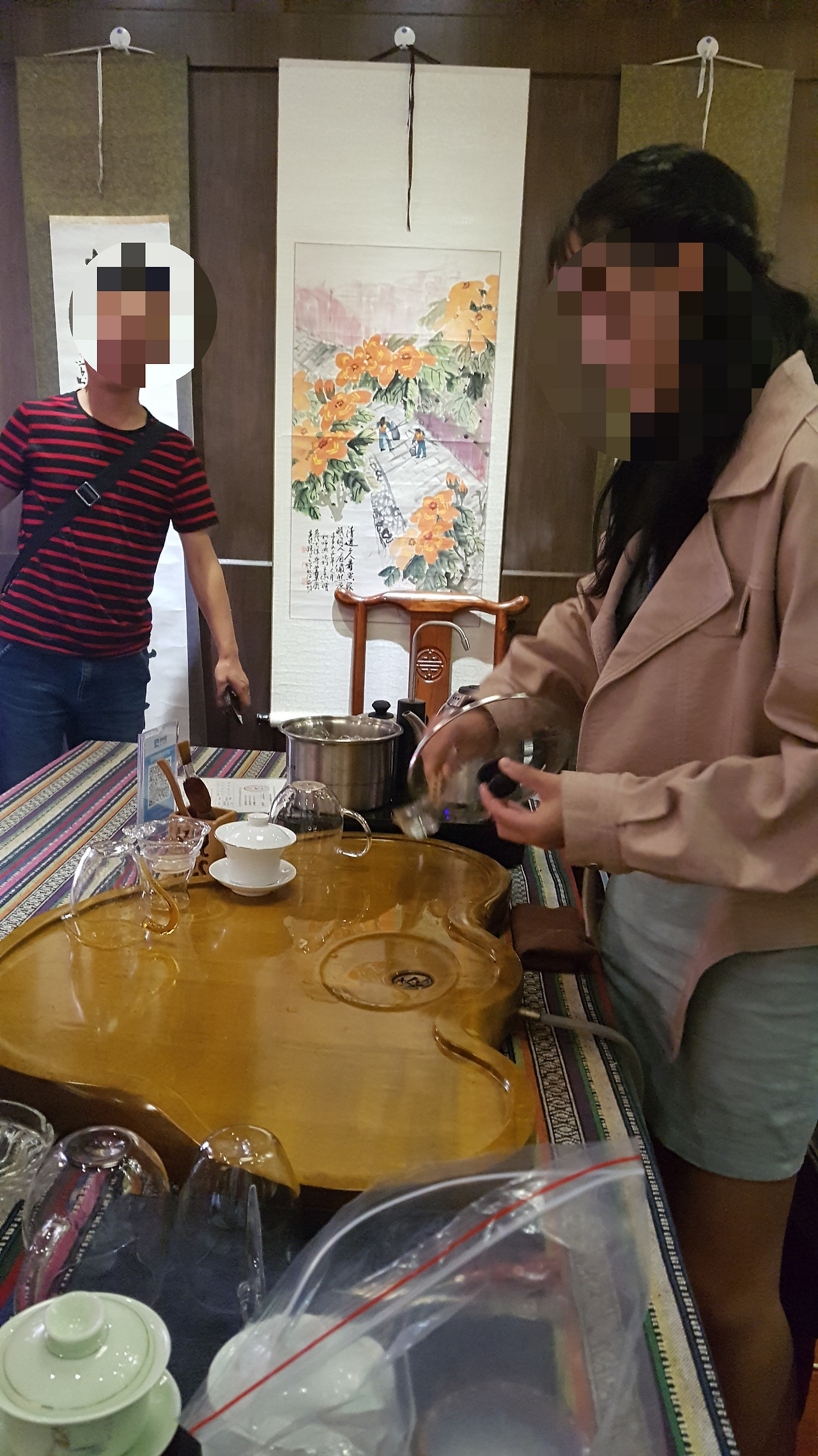 보이차에 대한 간단한 설명과 생차와 숙차 등 개념들을 익힌 후, 직원분이 직접 그 자리에서 차를 내려 한 잔씩 시음해 볼 수 있게 해 주었다. 박물관 안에는 둥그렇게 빚어 가운데가 움푹 들어간 차병(茶饼)을 많이 볼 수 있었다. 한 모퉁이에는 차병으로 만든 트리가 있고 그 위에 '귀중품이니 만지지 마시오!!'라고 적혀있었다. 진짜 차로 만든 걸까...? 궁금했다.