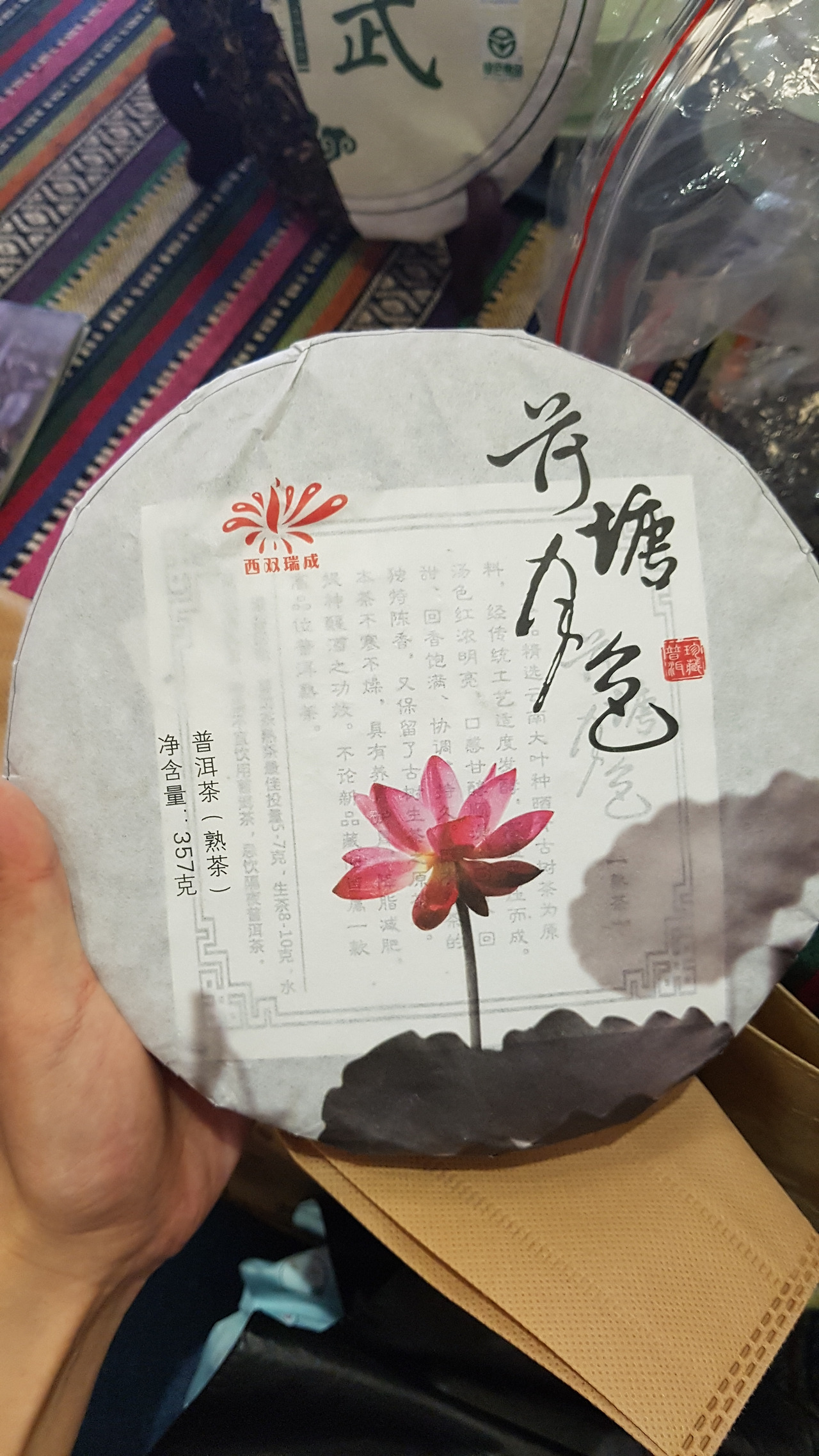 수허고진에 온 김에, 또 푸얼차를 만난 김에, 기념으로 보이차 하나를 사기로 했다. 초심자에게 좋다는 숙차로. 荷塘月色, 연못에 어린 달빛이라는 중국 작가 주자청(朱自清)의 글 제목을 이름으로 한 보이차다. 이름과 표지에 그려진 연꽃 한 송이가 마음에 들어 구매했다. 비싸게 산 것 같긴 하지만, .... 보이차는 원래 비싼 거라고 생각하기로 했다.