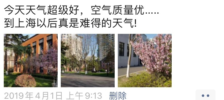 (譯) 오늘 날씨가 정말 좋았다. 공기질도 좋고! 상해에 온 뒤 정말 보기 힘든 날씨였다!