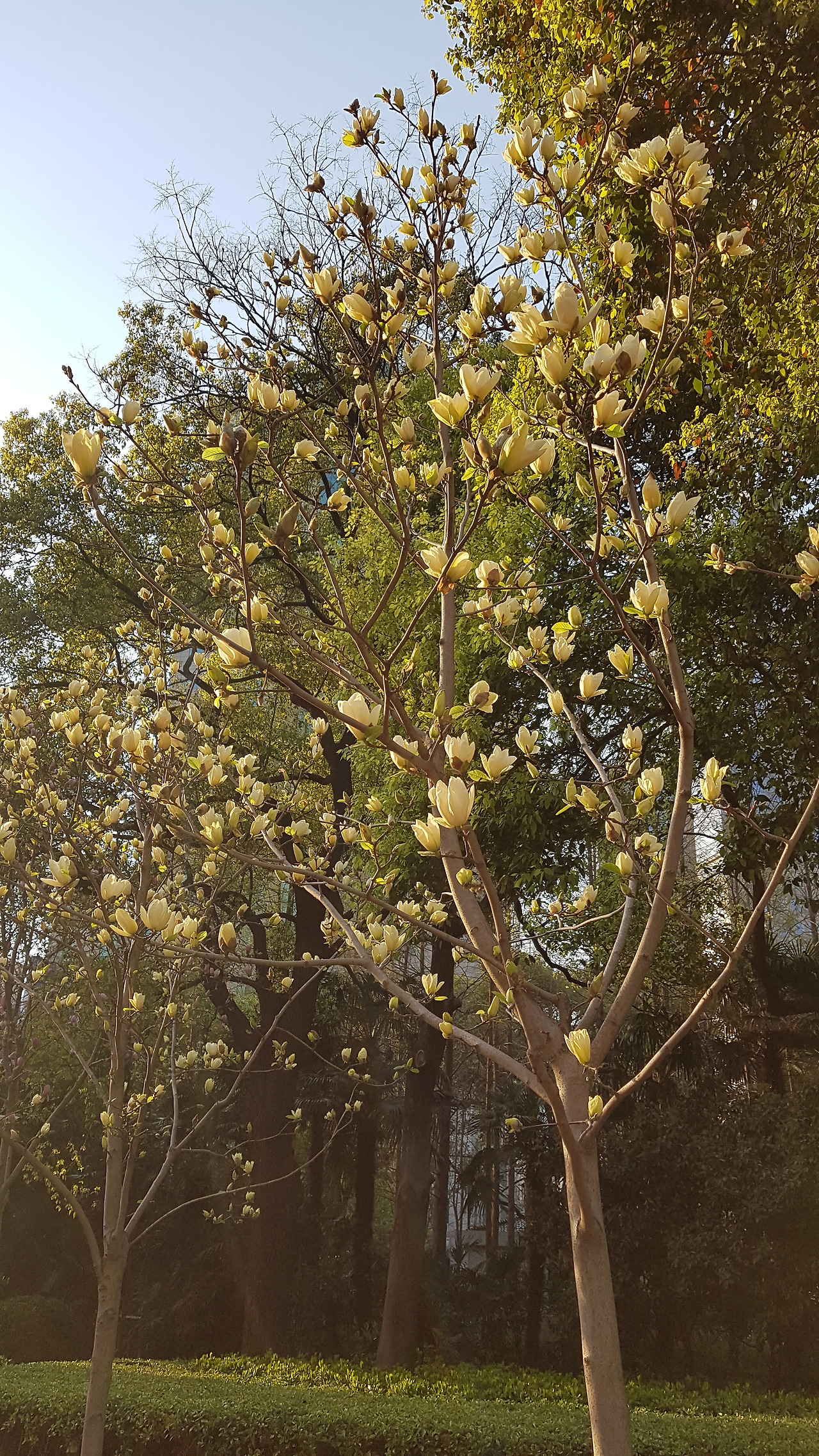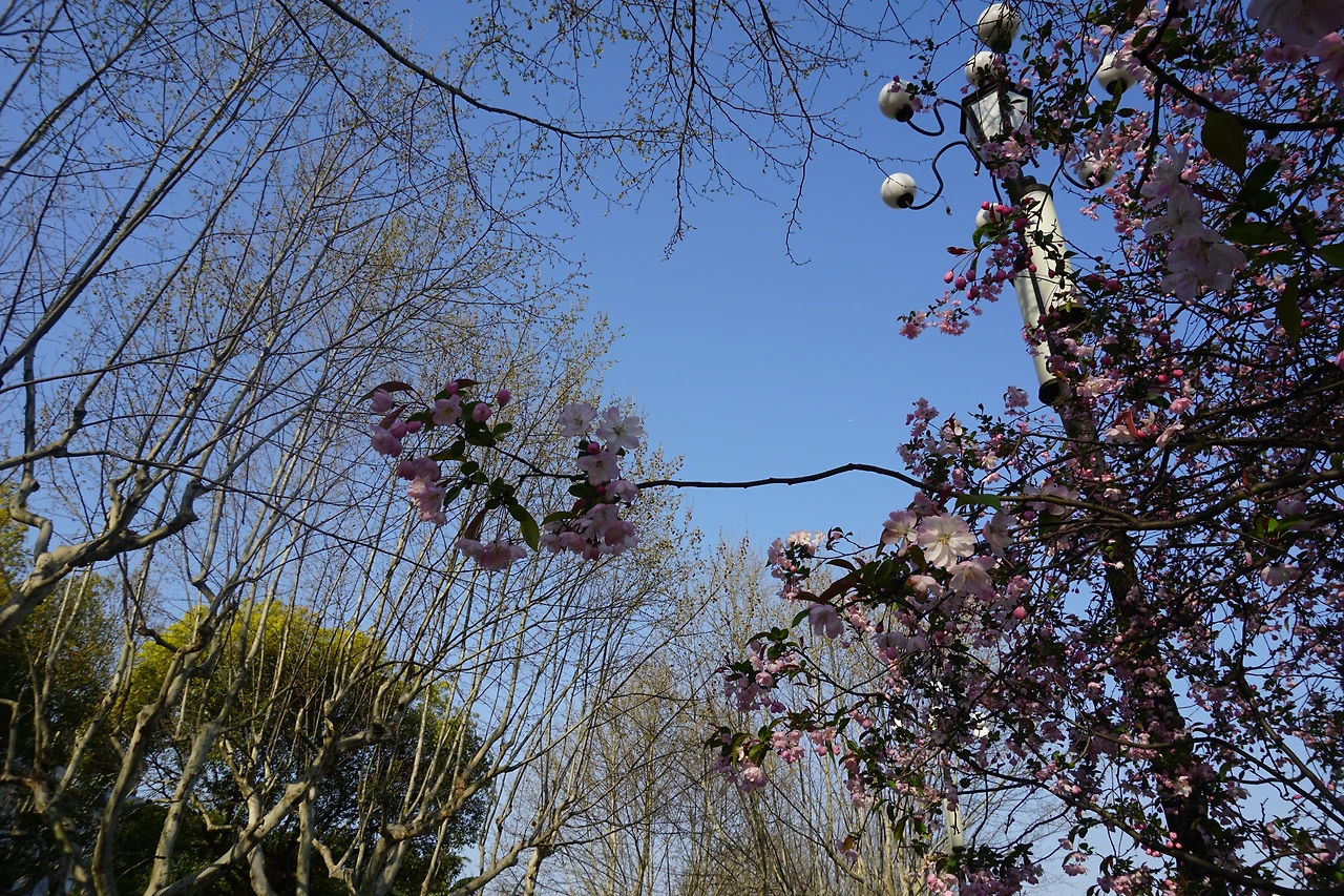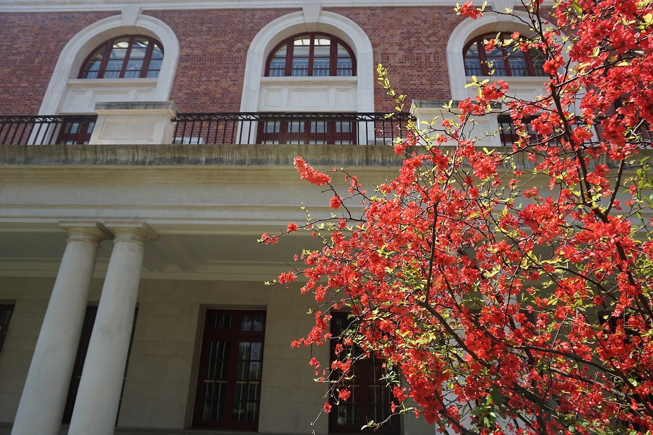 아직 봄다운 봄을 맞이하지 못한 상해인지라 나무가 앙상하다고만 생각했는데, 자세히 보니 끄트머리에 분홍빛 꽃들이 매달려있다. 그 나뭇가지들이 공터에 드리운 그림자가 또 하나의 풍경을 만든다. 곧 이 나무에도 더 풍성하게 잎이 돋아나고 또 다른 풍경이 캠퍼스를 채우겠지. 우측 하단의 그림 속 비석은 백주년 기념비다. 이 날은 기념사진을 찍는 일정이 있을 예정인지 기념비 앞에 이미 촬영을 위한 간이 의자가 설치되어 있었다.
