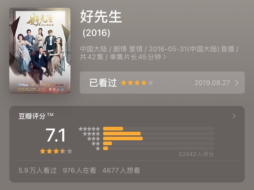 오늘 소개해드릴 드라마는 2016년 공중파 드라마계의 블록버스터라고 할 수 있는 드라마 <호선생(好先生)>입니다. 최근 넷플릭스에도 올라온 <겨우, 서른(三十而已)>이라는 중국 드라마를 찍기도 한 장샤오보(张晓波, 장효파) 감독이 감독을 맡았죠. 제가 이 드라마를 블록버스터라고 이야기하는 이유는, 16년 5월 절강, 강소, 산동성 방송국에서 방영을 시작한 뒤, 7월에 천진, 하남, 북경, 귀주 방송국에서 2차 방영을 했기 때문이죠. 추측컨대 쑨홍레이(孙红雷, 손홍뢰)와 쟝슈잉(江疏影, 강소영) 등 유명 배우의 캐스팅 덕분이 아닐까 합니다.