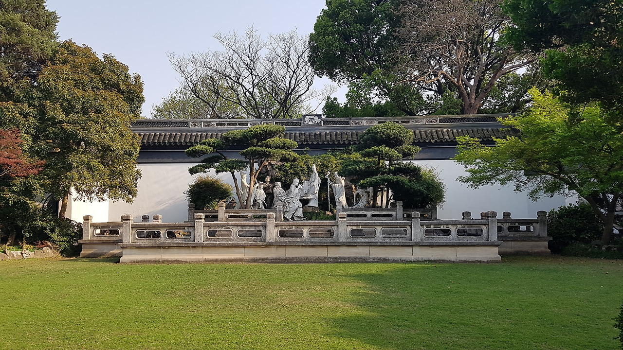 공원을 걷다보면 만나게 되는 석상(아래 왼쪽 사진)은 '팔선과해(八仙过海, 빠씨엔꿔하이)' 석상이다. 원래 있던 석상은 문화대혁명 때 훼손당하고, 지금 있는 버전은 복구된 석상이라고 한다. 다만 본래 이 황가의 정원에 왜 이 석상을 두었는지는 알 수 없다. 황진롱이 다른 이들에게 자신의 능력(本事)을 자랑하고 싶었던 걸까?