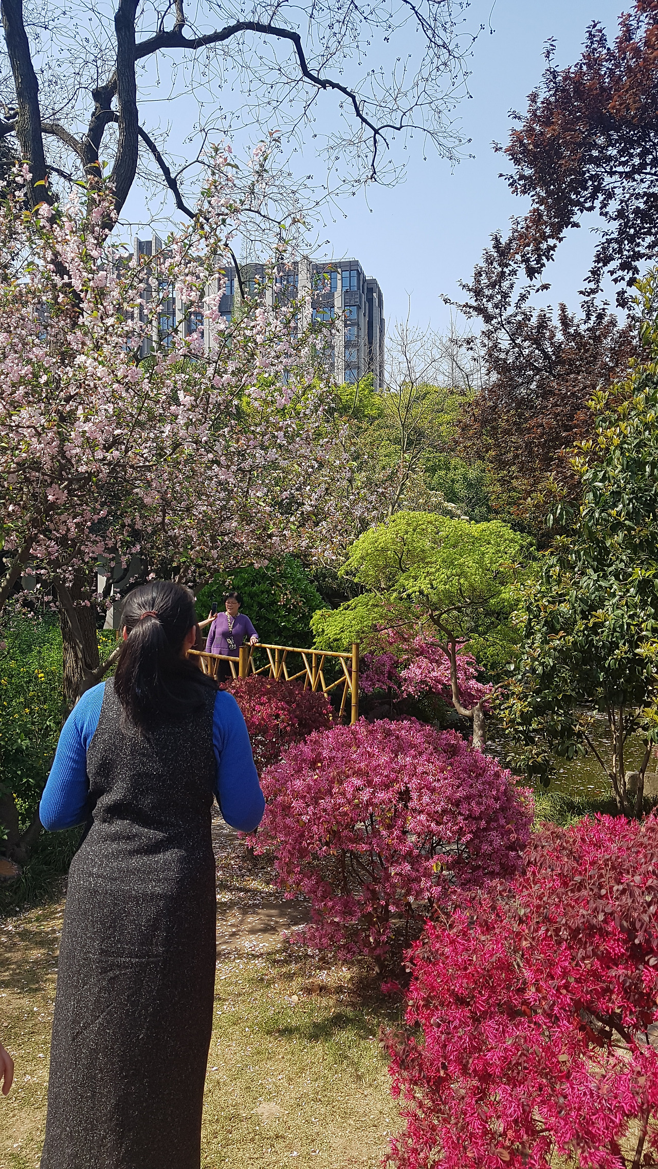 입구에서 얼마 지나지 않아 꽃이 만발해 있는 연못이 나타났다. 많은 주민들이 앞에서 사진을 찍고 있었다. 나는 아이와 이런 저런 주제로 이야기를 나누며 마음에 드는 풍경이 있으면 바로 사진을 찍어보라고 제안했다. 또 사진을 지우는 법도 함께 알려주었다. 혹시 흔들린 사진이 생기면 이렇게 지우면 된다고. 들어보니 아이는 평일엔 집 근처 상해사범대학(上海师范大学)의 학생들에게 간단한 수업을 듣는 것 같았다. 주말엔 이렇게 자원봉사자들과 만나 나들이를 다니거나, 종이접기, 비누방울 등 좋아하는 활동들을 한다고.