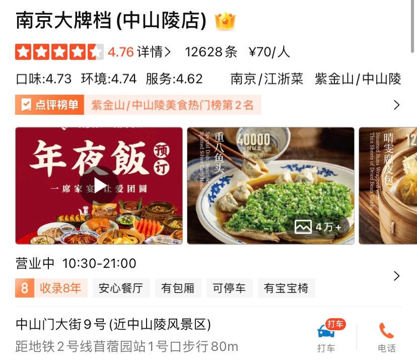 사실 이날 점심은 다소 특별한 자리였다. 지난 매거진 글에서 언급했듯, 난징 지역연구 일정을 짤 때 여러모로 열정적으로 조언을 해주었던 친구가 있었는데, 그 친구를 초대해서 같이 밥을 먹는 자리였기 때문이다. 본인의 일도 아니고 그 어떤 이해관계도 없는데 팔 걷고 많은 도움을 주어서 고마운 마음에 일행들의 동의를 받고 밥 한 끼 대접하기로 했다. 우리가 사는 밥인데 친구는 식당을 난징 요릿집으로 잡았다. 난징 요리는 질리도록 먹었을 것 같은데.. 고향인 난징에 와준 한국인 친구들을 위해 한 끼를 양보한 셈이다. 위챗 공중호(公众号)를 통해 예약이 가능하다면서, 다음 일정인 명효릉에서 가까운 곳에 있는 지점을 집어서 알려준다. 그게 바로 난징따파이당 중산릉점. 앞의 일정이 다소 밀려서 약속시간보다 좀 늦게 도착했는데 친구가 미리 도착해서 좋은 자리도 미리 맡아주었다.