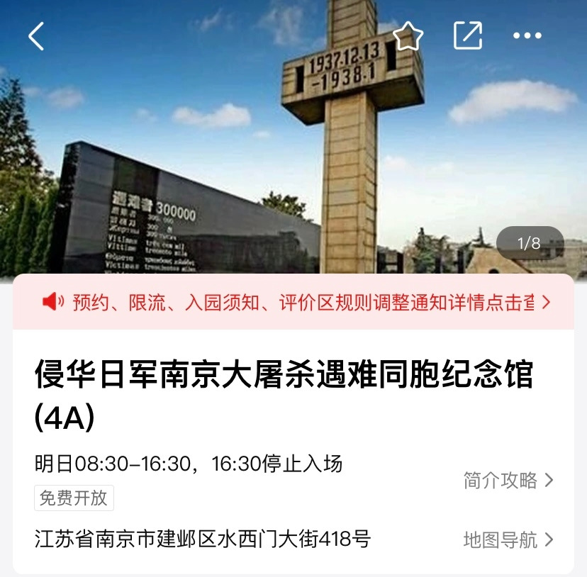19년 4월 우리가 갔을 때 이곳은 당일에 별도의 매표나 예약 절차 없이 들어갈 수 있었는데, 이 글을 쓰면서 다시 찾아보니 최근에 정책이 바뀐 것 같다. 이제 이곳 이름으로 된 위챗 공중호(公众号)에서 방문시간대에 따라 예약을 하고, 그것을 근거로 입장이 가능한 것 같으니 혹시 난징 여행 시 이곳을 방문하고자 한다면 미리 알아보는 것이 좋겠다.