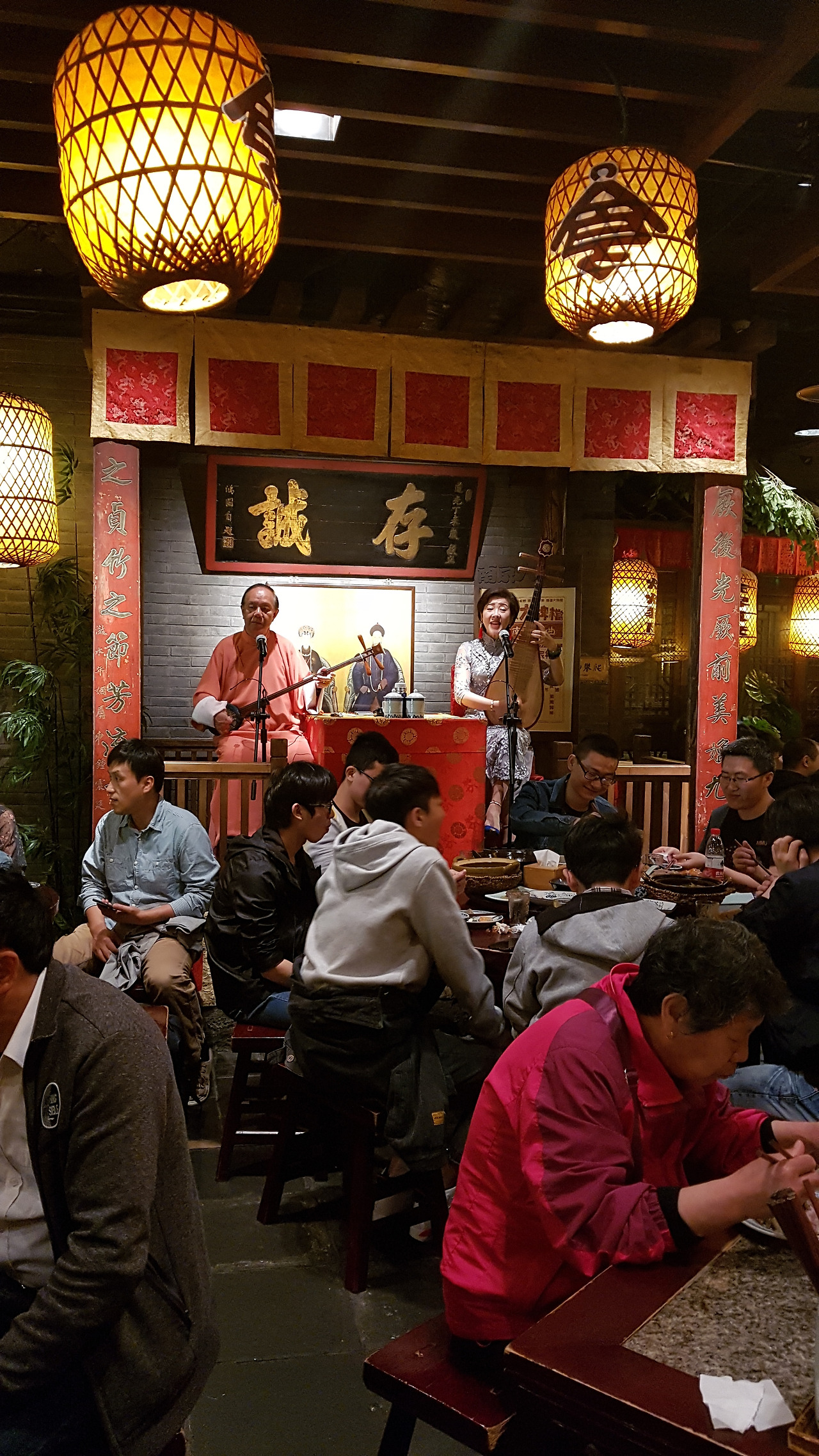 사실 난징의 전통 요리를 맛볼 수 있다는 점 외에 이 식당의 특징이 하나 더 있는데, 그건 바로 강남지방 공연예술의 하나인 평탄(评弹) 공연을 보며 식사를 할 수 있다는 점이다. 특별히 정해진 시간은 없는 것 같고, 식사가 한참 진행되는 정오, 저녁 6시쯤 공연이 진행된다. 평탄이 가장 유명한 지역은 쑤저우(苏州)지만, 비슷한 방언(吴方言)을 쓰는 강소성, 절강성, 상하이까지도 그 유행 지역에 포함시킬 수 있기 때문에 난징에서 봐도 전통과 부합한다고 할 수 있다.
