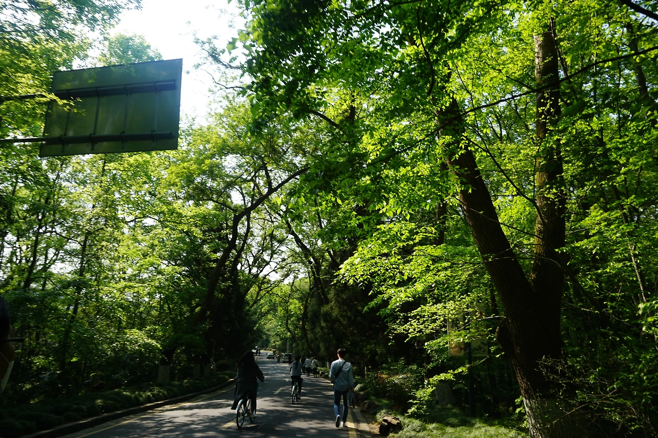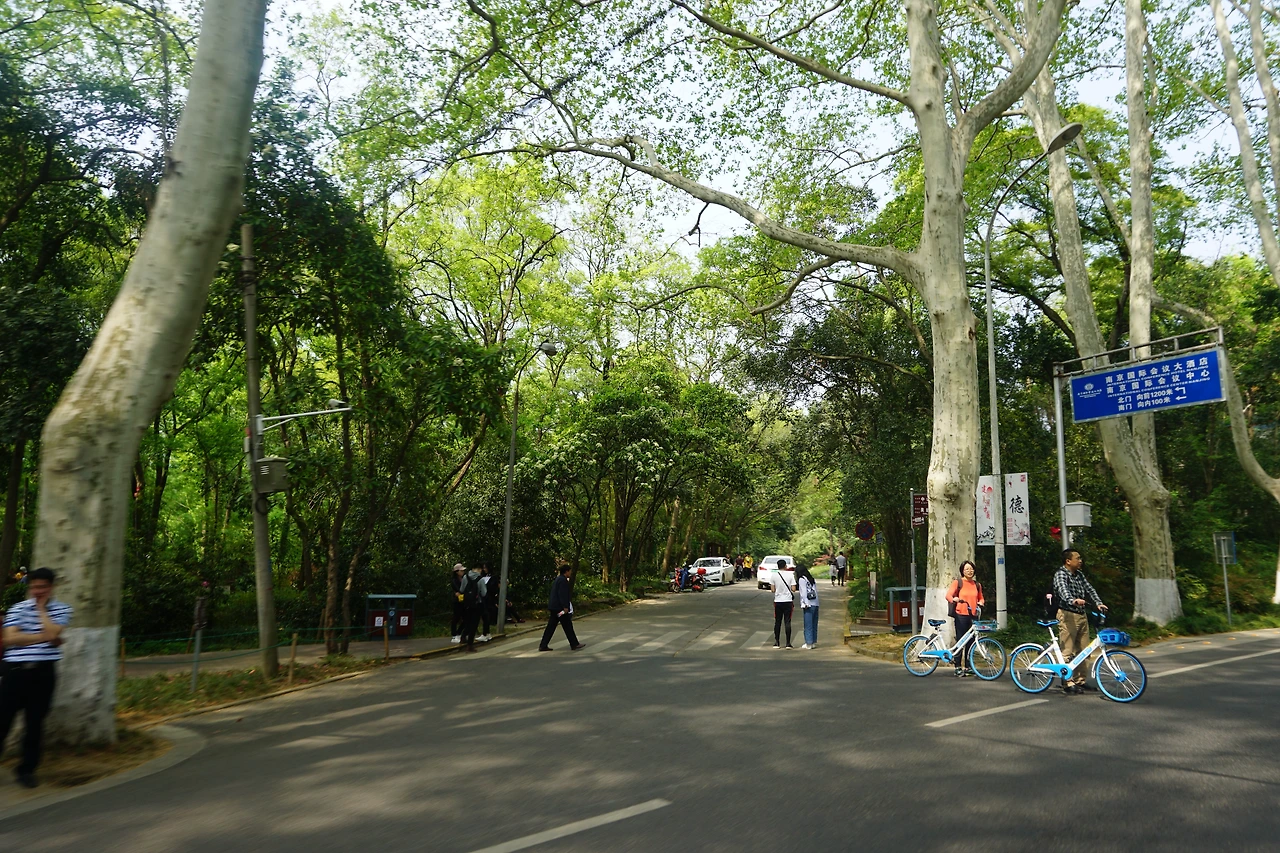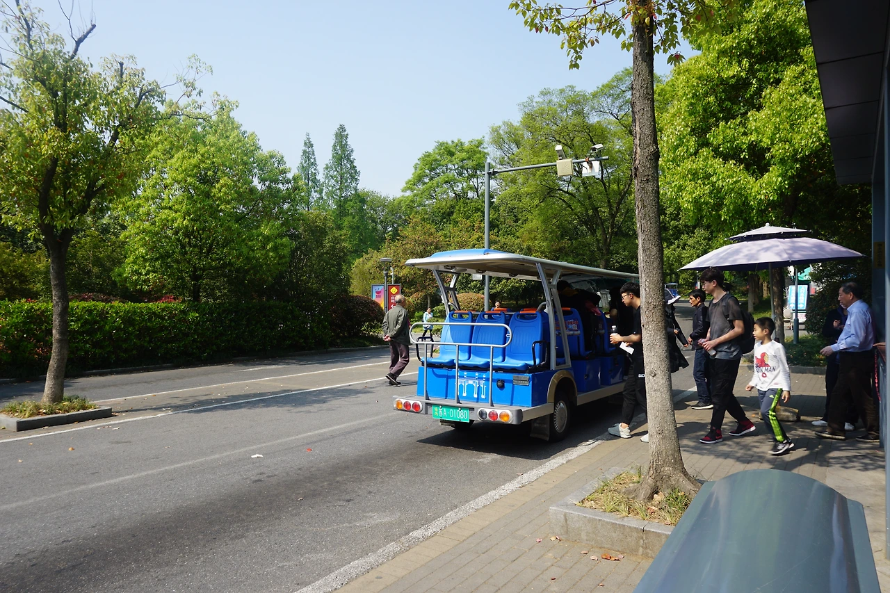 4월 12일의 난징은 이미 봄기운이 가득하여 한낮에는 가디건도 필요 없을 정도의 온도였다. 입구에 마침 셔틀이 보이기도 하고, 안이 무척 크니까 걸어가는 건 무리라는 친구의 조언도 있고 해서 아무 생각 없이 일단 셔틀에 몸을 실었는데, 셔틀 안에서 밖을 바라보니 수많은 중국인들이 자전거도 타고, 걷기도 하고, 여유롭게 산책을 즐기며 이동하고 있었다. 참 건강하게 산다. 셔틀이 가는 길에 온통 플라타너스가 심어져 있어 상해 조계지를 연상시킨다.