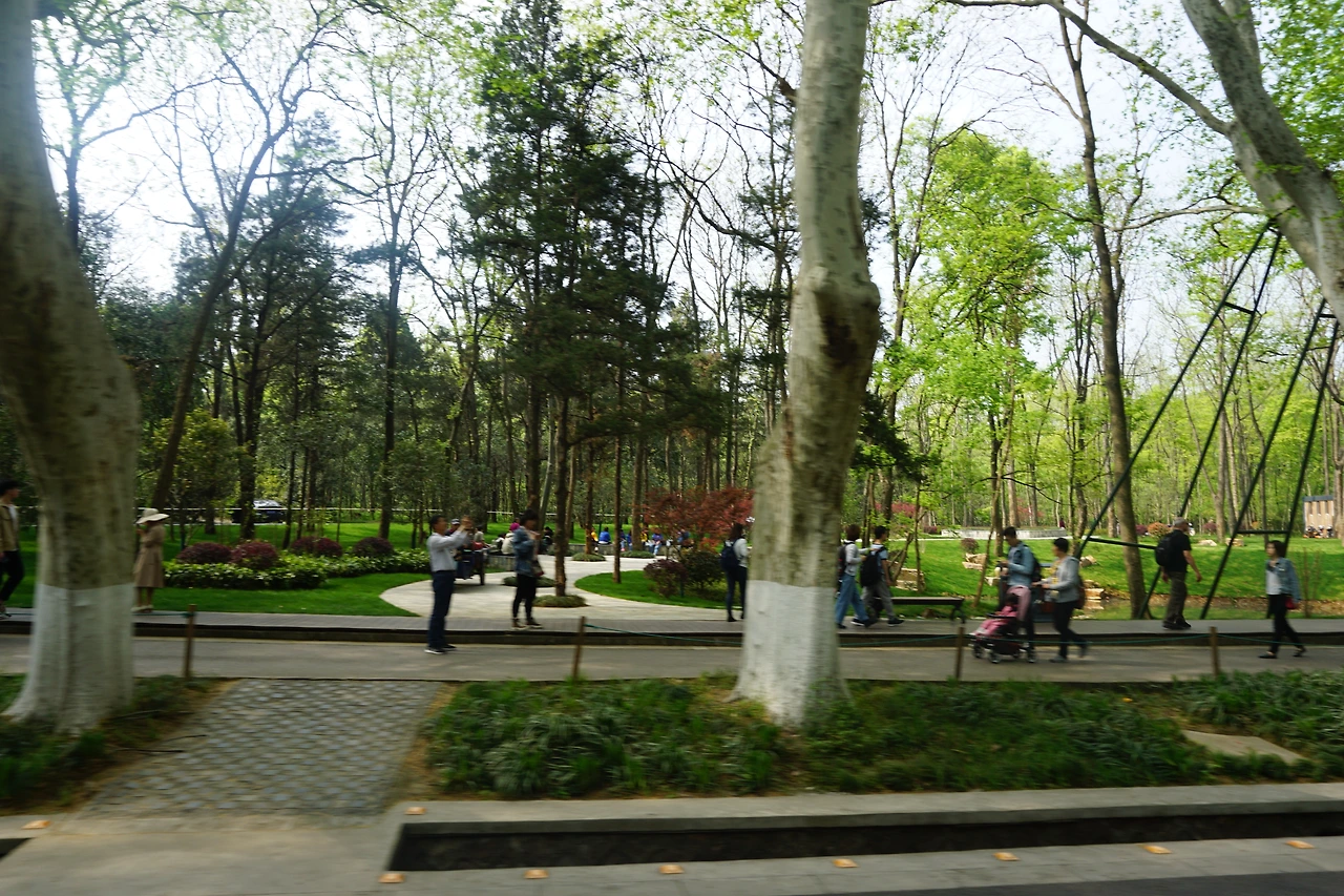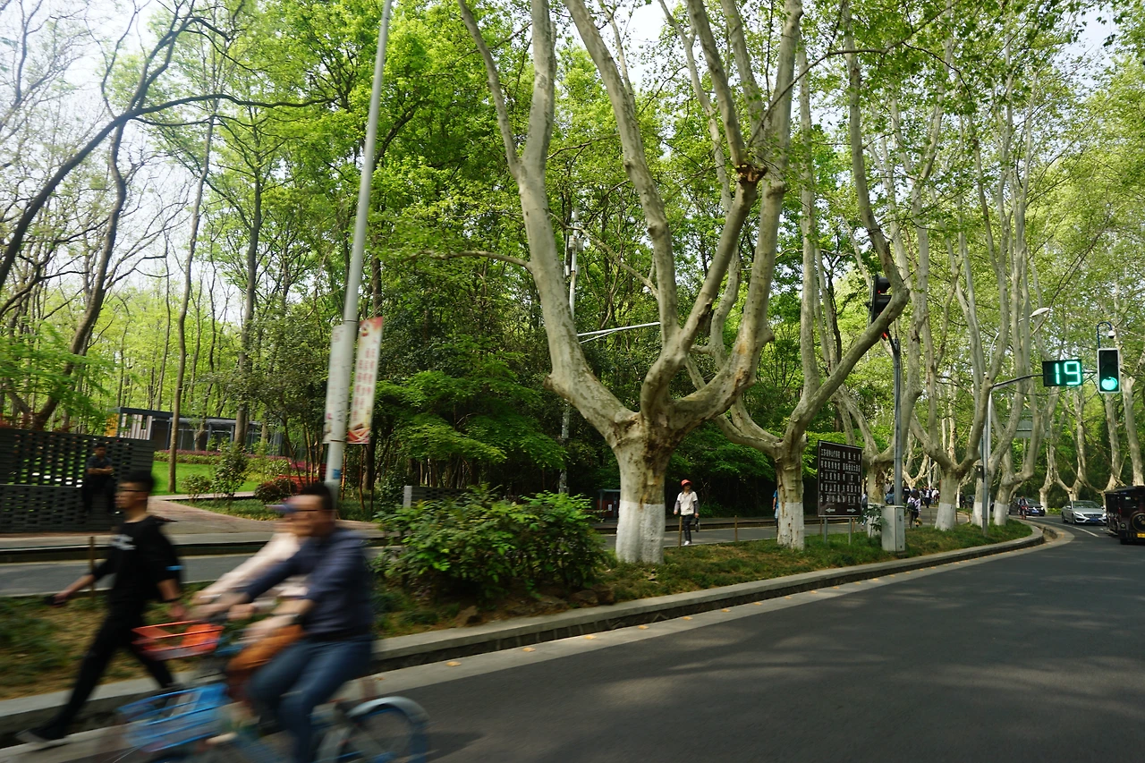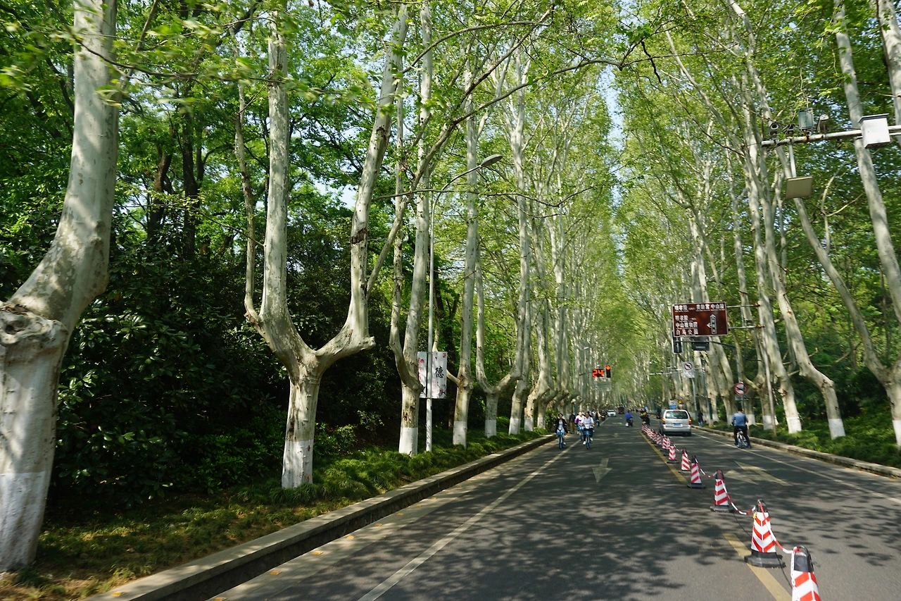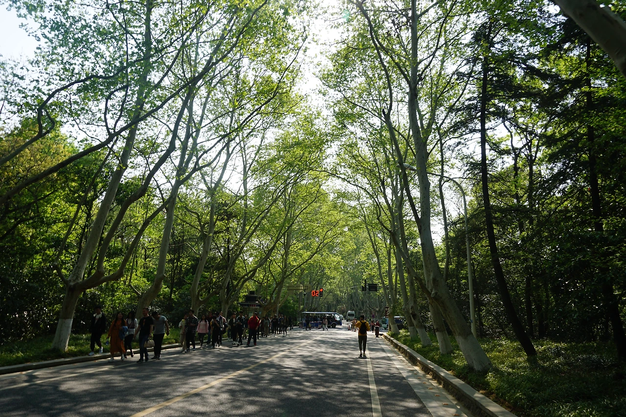 4월 12일의 난징은 이미 봄기운이 가득하여 한낮에는 가디건도 필요 없을 정도의 온도였다. 입구에 마침 셔틀이 보이기도 하고, 안이 무척 크니까 걸어가는 건 무리라는 친구의 조언도 있고 해서 아무 생각 없이 일단 셔틀에 몸을 실었는데, 셔틀 안에서 밖을 바라보니 수많은 중국인들이 자전거도 타고, 걷기도 하고, 여유롭게 산책을 즐기며 이동하고 있었다. 참 건강하게 산다. 셔틀이 가는 길에 온통 플라타너스가 심어져 있어 상해 조계지를 연상시킨다.